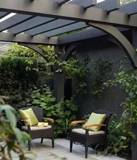 一個開滿鮮花的院子固然少不了一個花架搭建一個簡單的鋁合金花架在柱腳種上攀爬植物來年春天時綠油的枝葉與花兒纏繞于花架上庭院將是另一番景色在鋁合金花架下小憩或者看看書特別是在有著暖暖陽光的午后太陽透過綠蔭