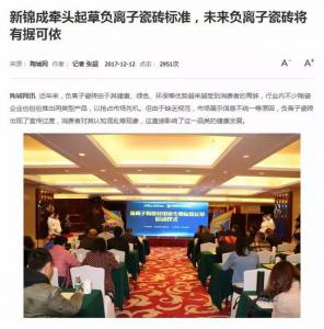 陶瓷一線品牌12月12日,由新錦成產(chǎn)業(yè)集團(tuán)牽頭制定的《負(fù)離子陶瓷磚定義及應(yīng)用》和《負(fù)離子陶瓷磚健康價(jià)值等級(jí)劃分和標(biāo)識(shí)》國(guó)家行業(yè)標(biāo)準(zhǔn)立項(xiàng)啟動(dòng)儀式“來襲兇兇”,現(xiàn)場(chǎng)吸引了新浪家居、騰訊家居、網(wǎng)易家居、搜狐