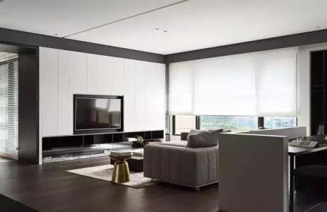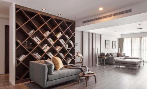 本案主人喜歡簡約的家居生活。設(shè)計師根據(jù)主人喜歡以及居室空間特點,設(shè)計出這種簡單大氣的簡約風格。電視背景墻采用布藝壁紙,四周石膏線框邊。沙發(fā)背景墻選用水墨畫,彰顯意境。兩側(cè)實木鏤空隔斷映襯出別樣效果。客
