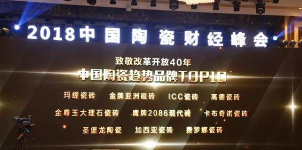 圣堡龍?zhí)沾蓸s獲“改革開放40年中國陶瓷趨勢品牌TOP10”大獎改革開放40年中國陶瓷趨勢品牌TOP1012月26日,由中國陶瓷工業(yè)協(xié)會,中國電子商務(wù)協(xié)會、南莊鎮(zhèn)人民政府、陶瓷財經(jīng)主辦的“致敬四十年,筑