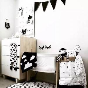 除了方形抱枕三角形抱枕也挺可愛的店主說自己特別喜歡小旗子黑白色可愛的三角旗用來裝飾墻面正反兩面都可以使用哦掛在墻面的布袋實(shí)用與裝飾兩不誤店主自家的裝飾連同床單被套平時(shí)使用的簍子也都是黑白色的雖然只是兩