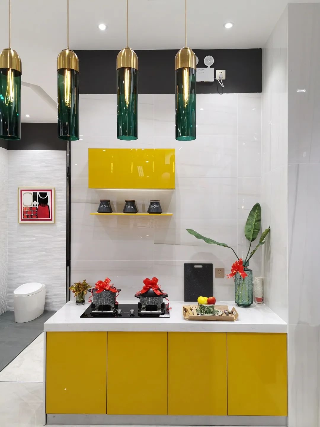 亮光墻磚“星白”打造的廚房空間,清新雅致,與顏色鮮明的黃色調(diào)形成鮮明的對(duì)比,驚艷視覺(jué)。