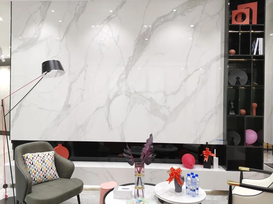 坐在客廳沙發(fā)上,欣賞著時(shí)尚大氣的“魚(yú)肚白”背景墻,感嘆大板瓷磚的空間魅力。