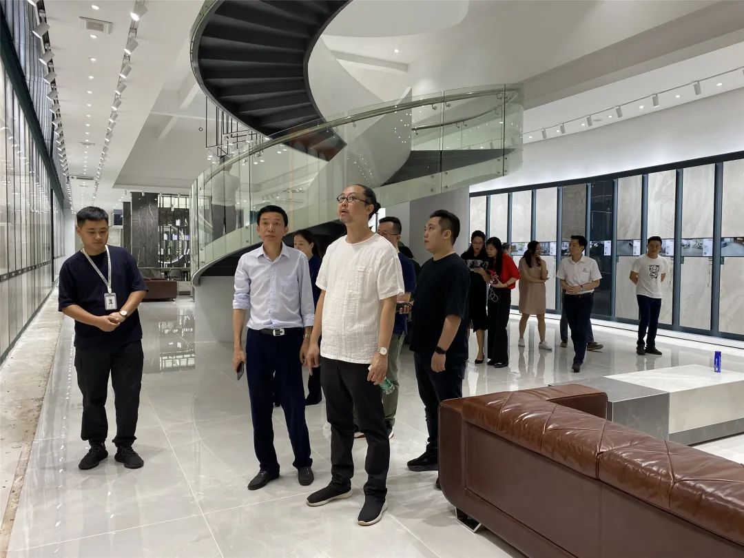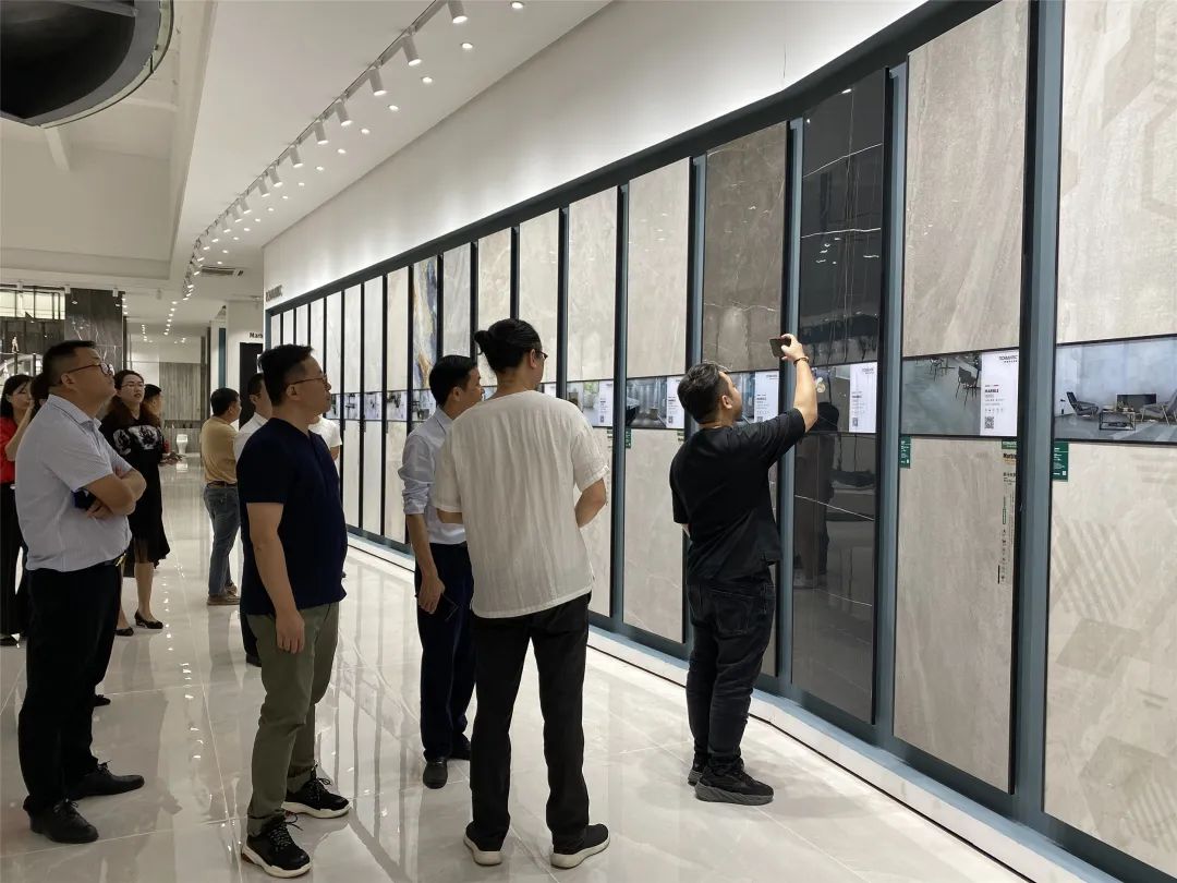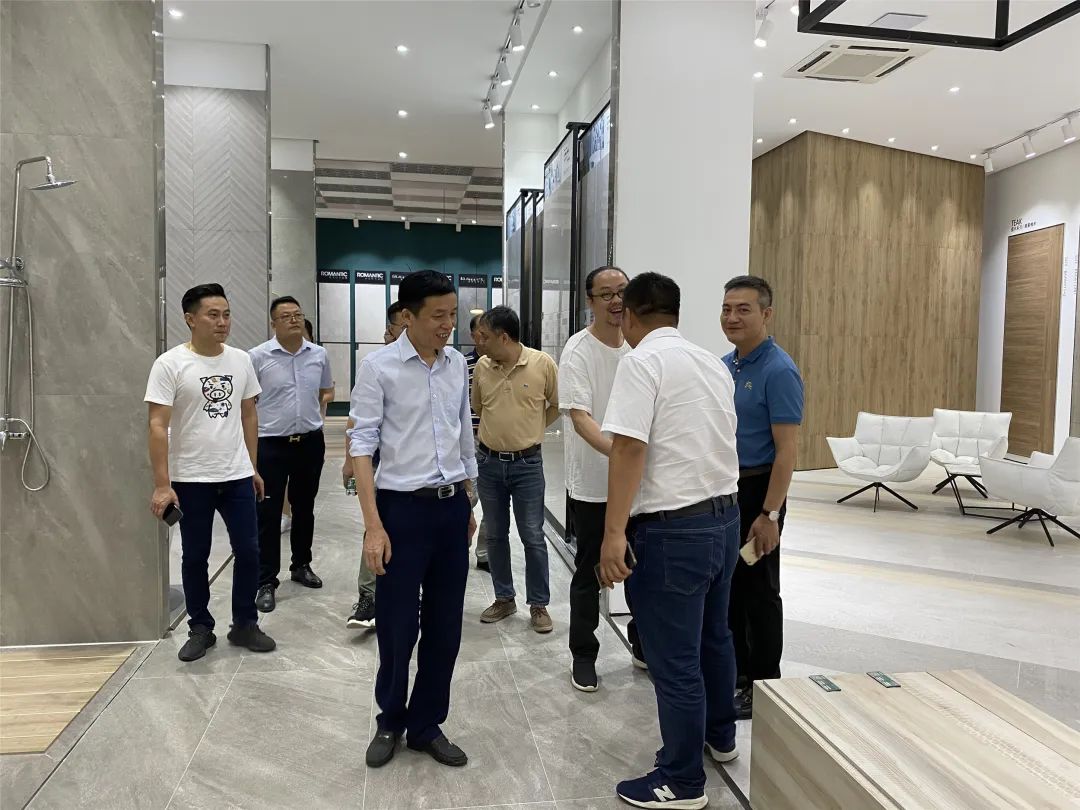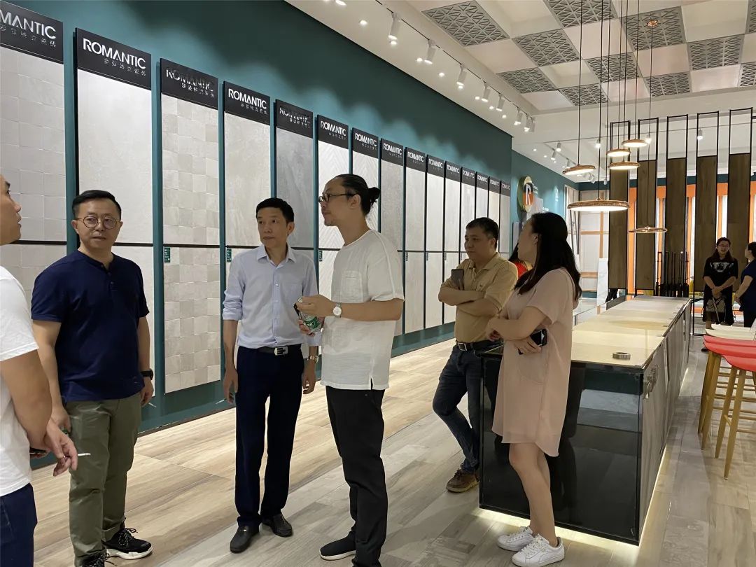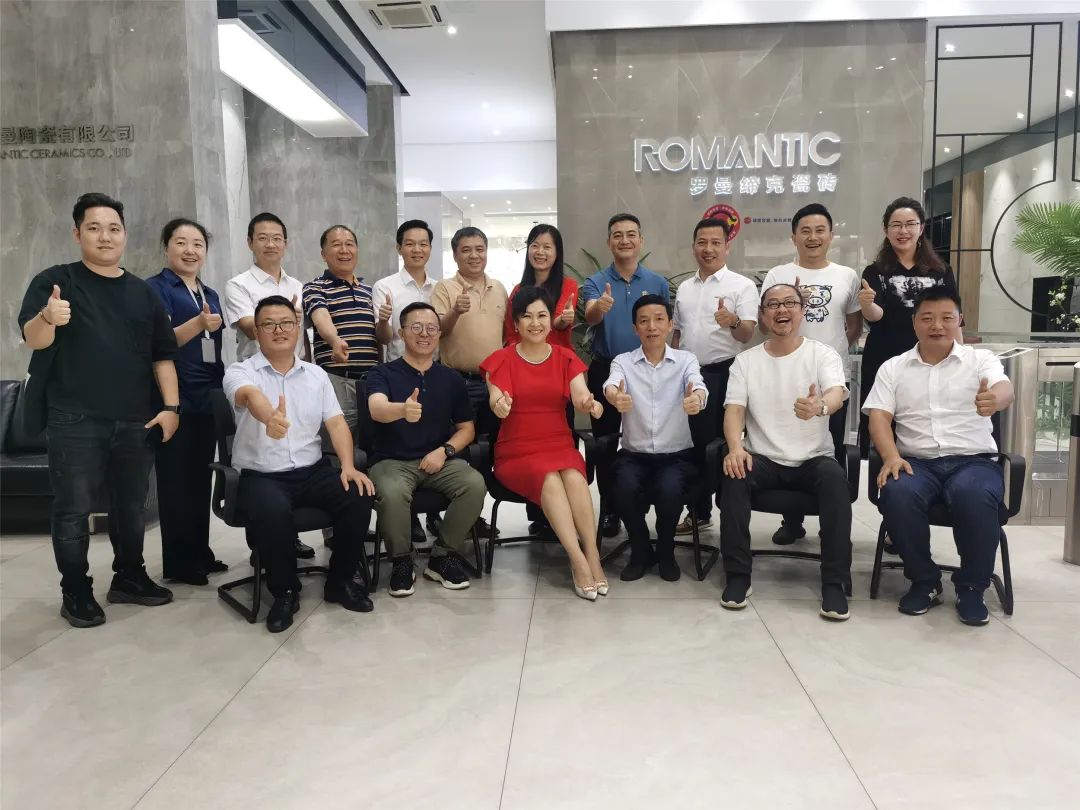 On July 23, nearly 20 guests, including Chairman Lan of the Guangdong Building Decoration Materials Association, and a number of elite designers and entrepreneurs from the association, visited the Foshan headquarters of Romantik Ceramic Tiles to visit and exchange.