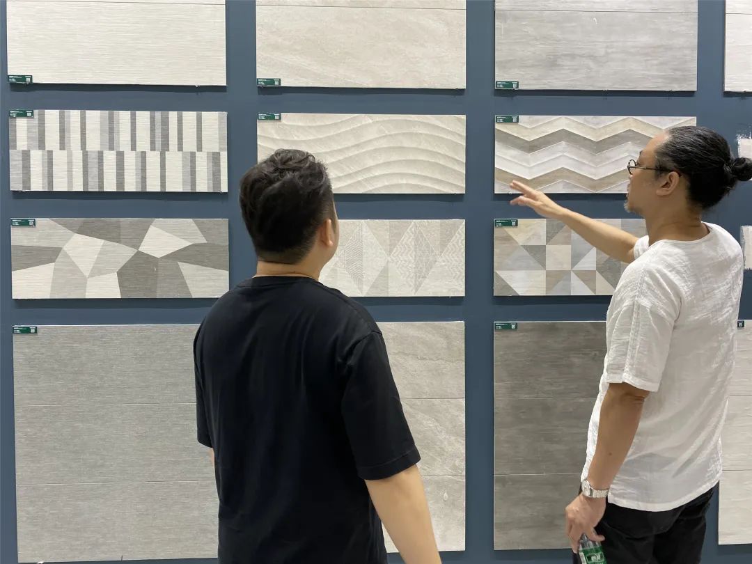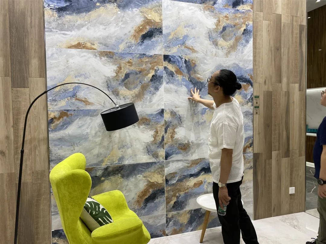 During the visit, the guests were amazed by the Romantic products. Whether it is the industry's first three-dimensional mold tiles with a golden ratio of 300.800, a marble tile series with 56° ultra-white background technology, or large slabs of 750x1500mm and 900x1800mm, the guests are excited and lament the designer's dazzling ingenuity.