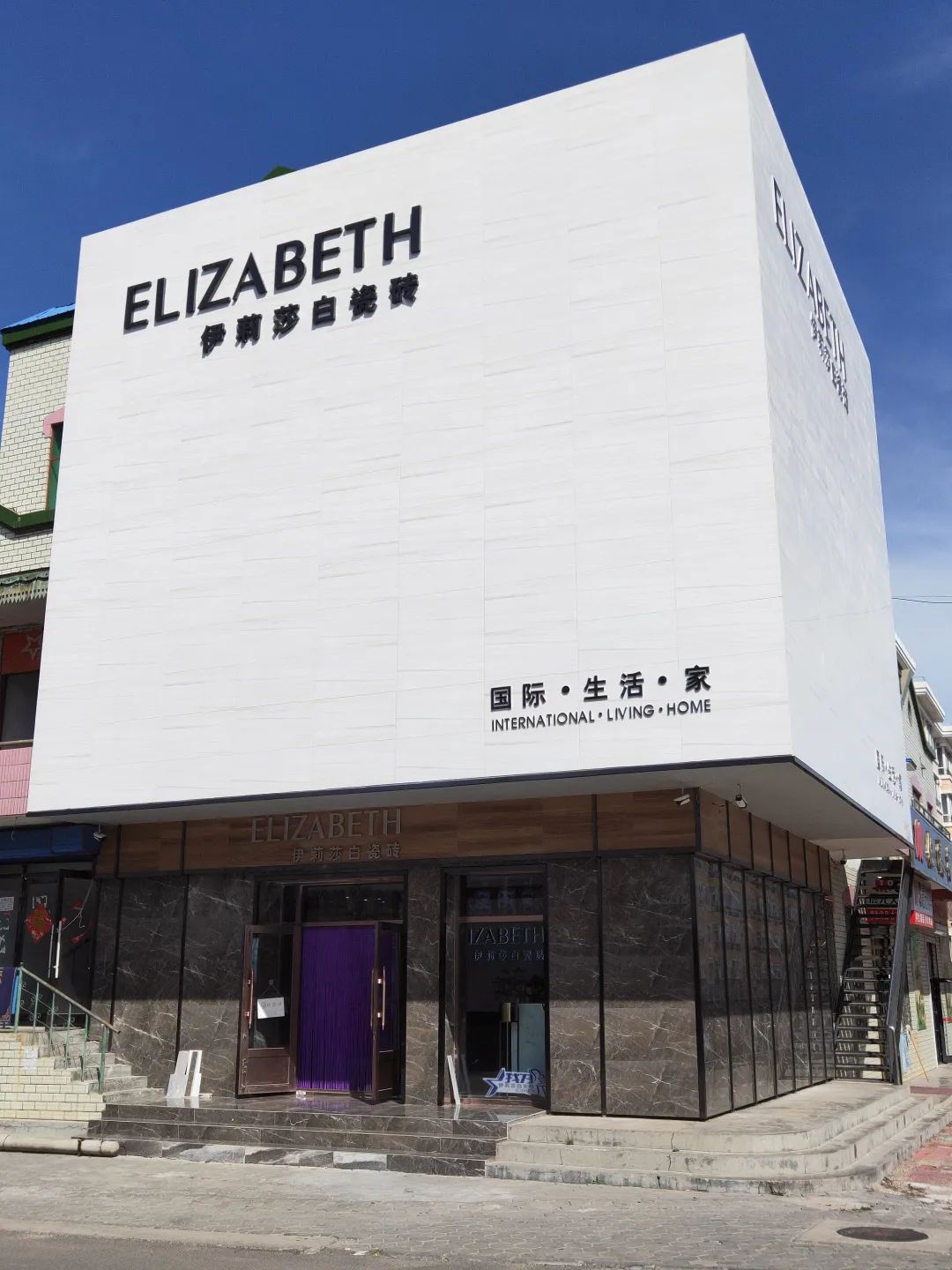 The modern pavilion is located in the south of the local people's market. It has three storeys and a total area of 240 square meters. Adhering to the design concept of "international Life", the modern museum of ELIZABETH Jalainur is infused with a strong sense of modern life. High-quality ceramic tile products are integrated into the scene space display to create an immerative home experience.