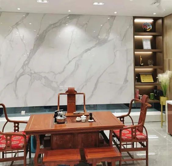 伊莉莎白瓷磚具有極致的百塔效果,除了時(shí)下大熱的現(xiàn)代簡(jiǎn)約風(fēng),還能輕松駕馭多種裝修風(fēng)格;古典韻味的紅木家具+連紋巖板背景墻,傳統(tǒng)中式元素與現(xiàn)代元素的完美結(jié)合,打造一個(gè)大氣雅致的新中式風(fēng)客廳。