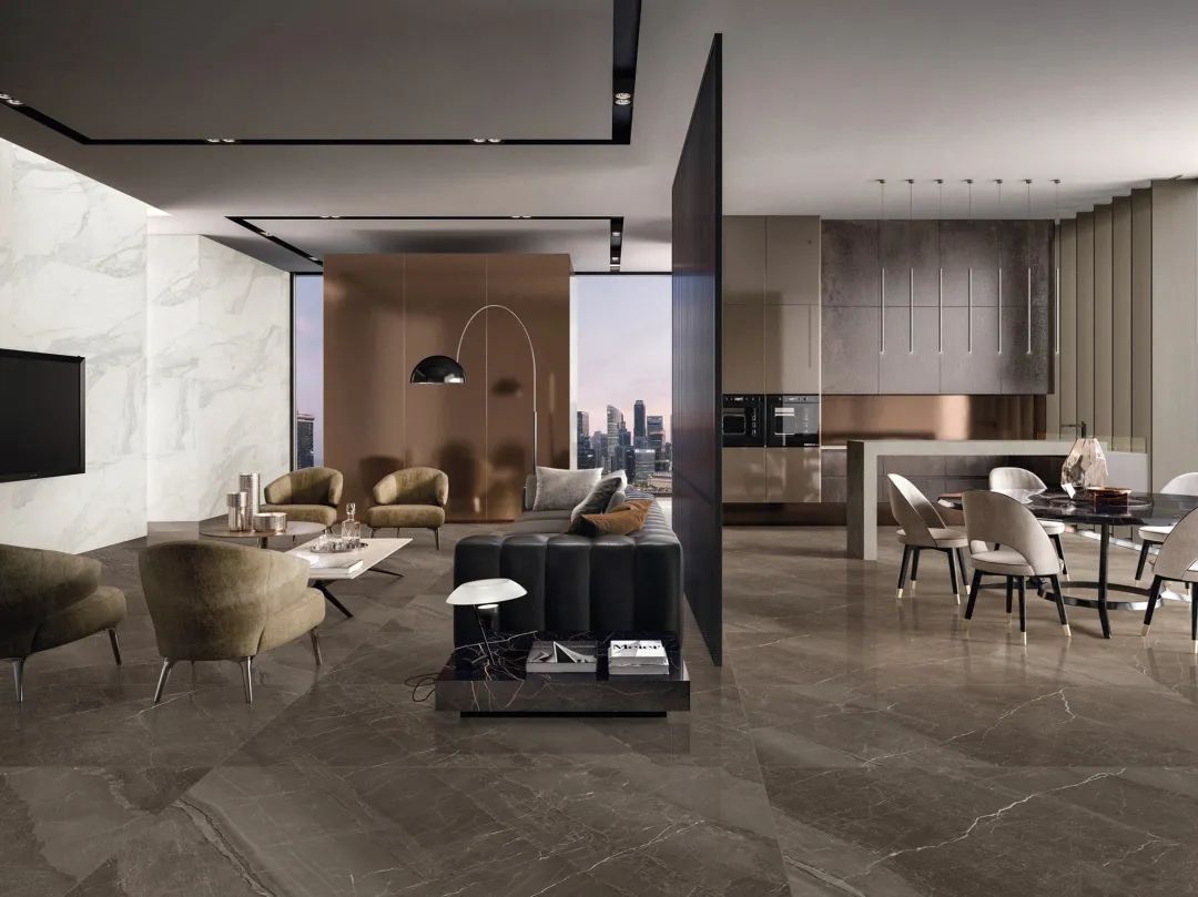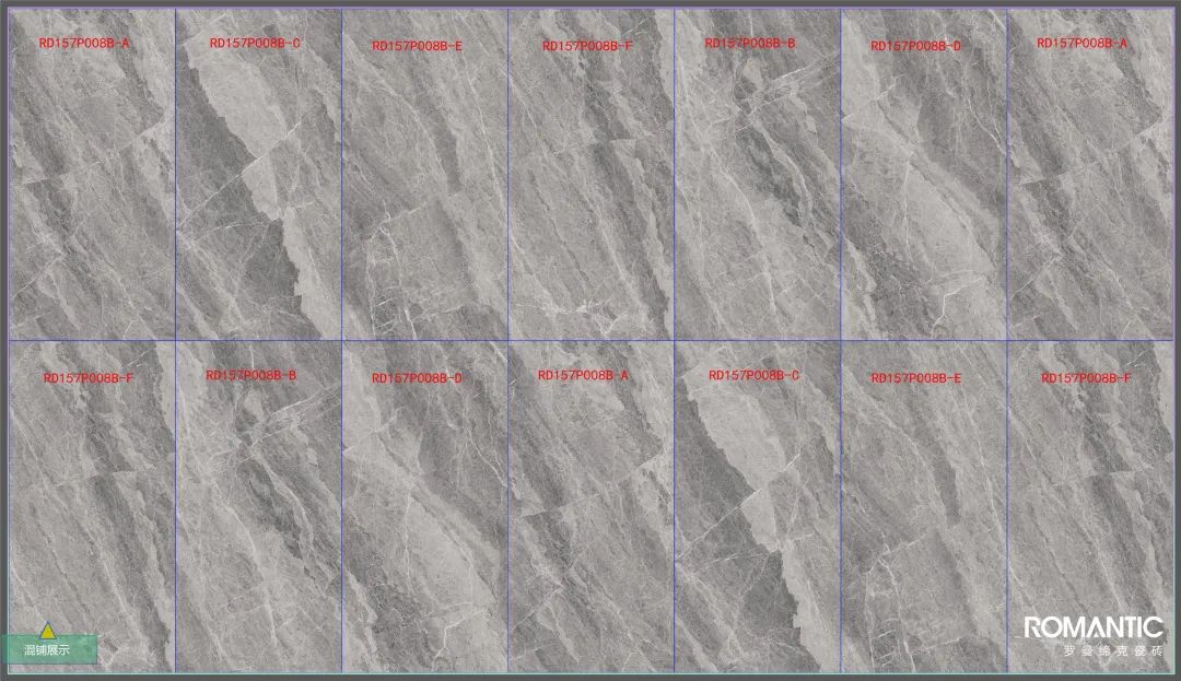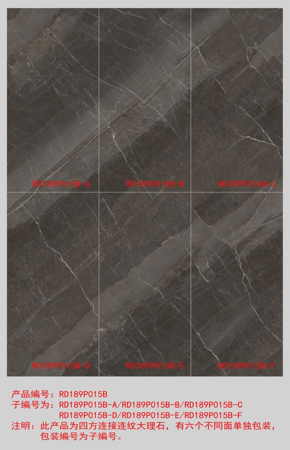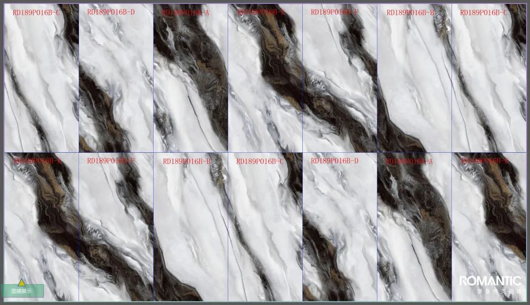 ROMANTIC無限連紋大板每一款都是一石6圖案設(shè)計(jì),完美模擬了天然石材的肌理和光澤,可以根據(jù)編號(hào)順序,實(shí)現(xiàn)無限連紋鋪貼,呈現(xiàn)連貫性、完整性的紋理展示,形成大面積的圖案,讓空間更顯開闊大氣。