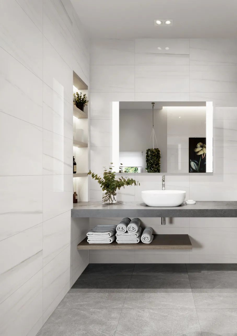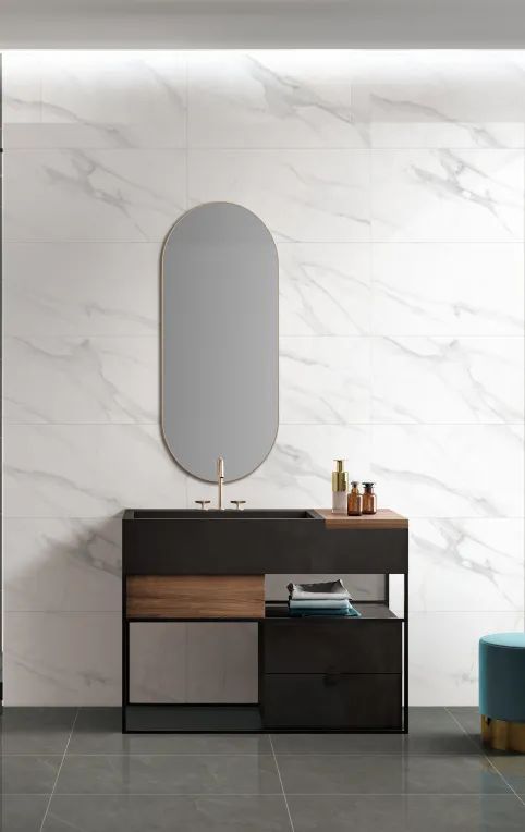The natural and smooth texture of "Carrara" is like a turbulent river, bringing a dynamic aesthetic feeling to the space.