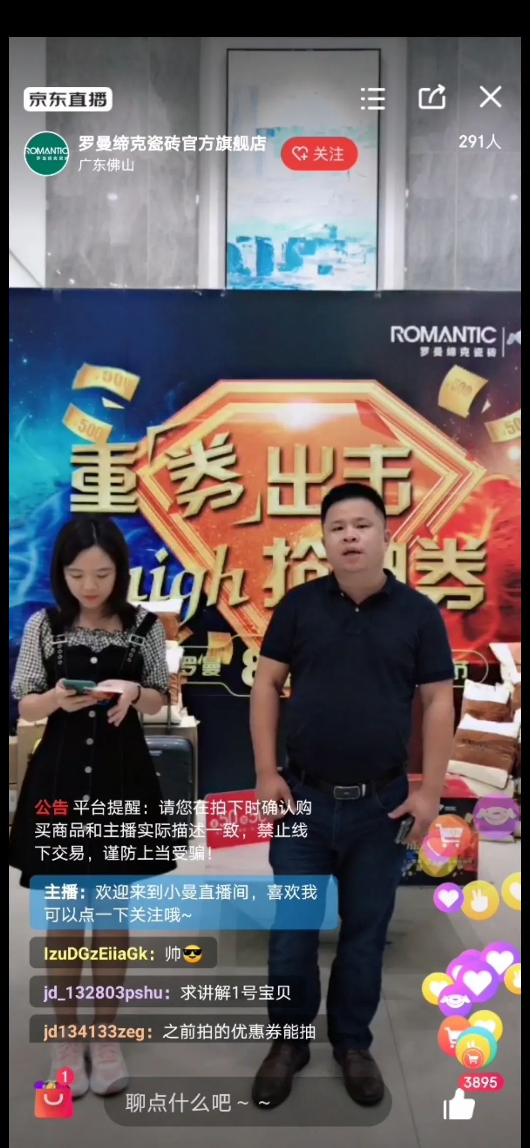 重量級(jí)嘉賓為直播間觀眾講解和推薦羅曼締克瓷磚年度明星產(chǎn)品和特色產(chǎn)品。讓消費(fèi)者不出家門也知道,現(xiàn)在終端消費(fèi)者喜歡的潮流時(shí)尚單品和設(shè)計(jì)師鐘愛(ài)的獨(dú)具一格產(chǎn)品都是哪一些!直接掌握工廠內(nèi)部第一手銷量數(shù)據(jù)!引起一眾消費(fèi)者圍觀。