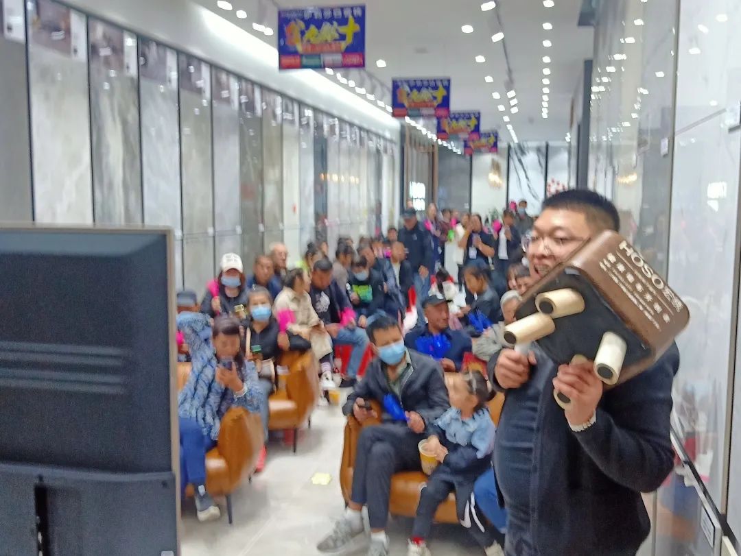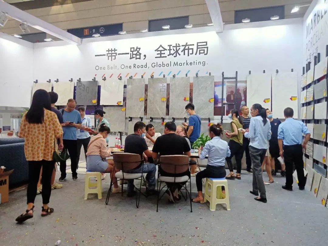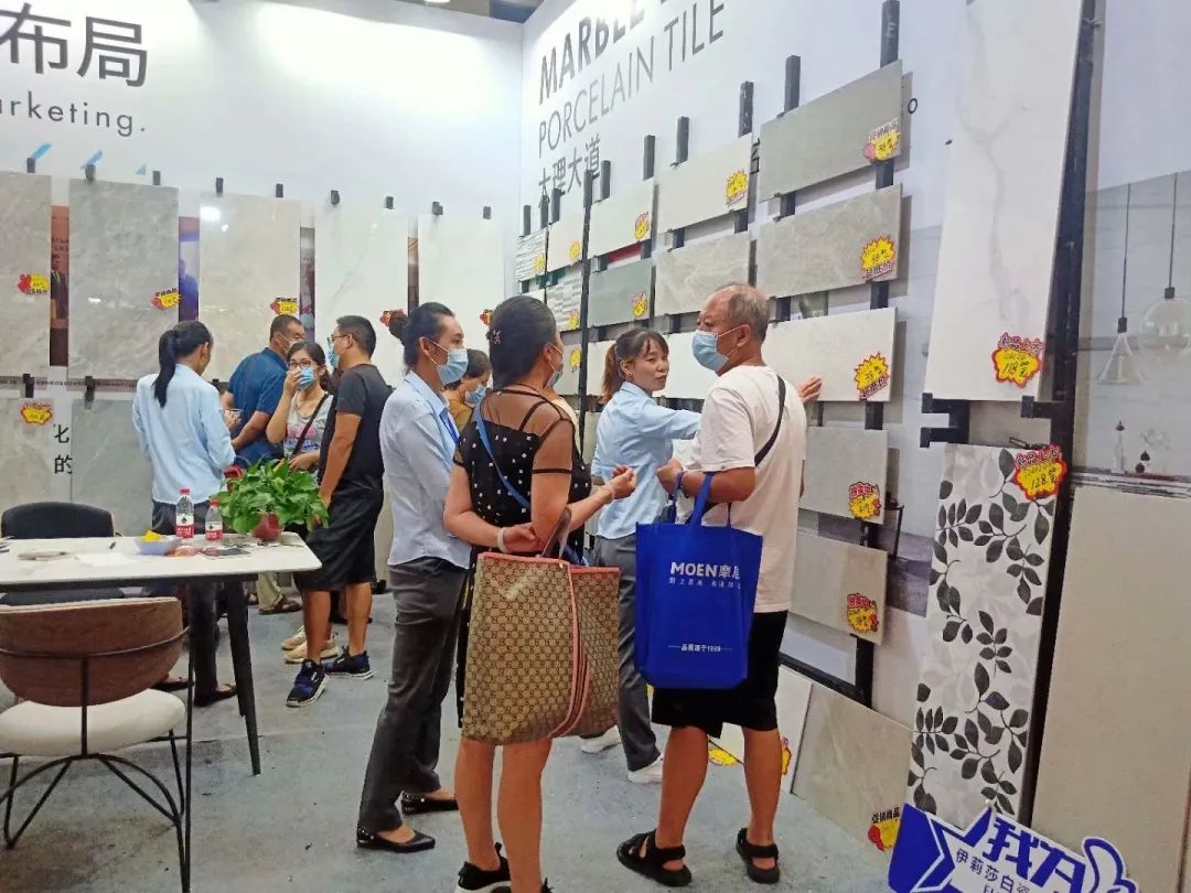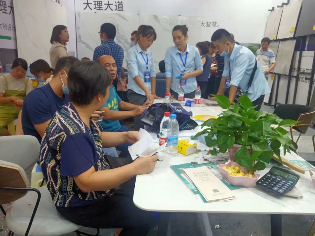 On the day of the show, Eliza's white tile booth attracted a crowd of owners. Many new products, such as 900*1800mm large board with texture, 600*1200mm super white base marble tiles, 300x800 art wall tiles, etc., have attracted many consumers to come to taste and choose after the debut of the best-selling series. Some owners are more early in the store to watch, waiting for the start of the activity, they will directly come to order.