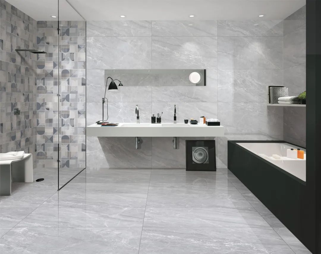 淺而若無的金絲紋流淌下來,讓瓷磚有了東方韻味