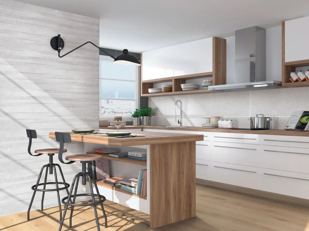 中島指的就是在廚房的中心配置一個柜體,四面都不靠墻,就像一座漂浮在海面上的島嶼,中島也由此而來。