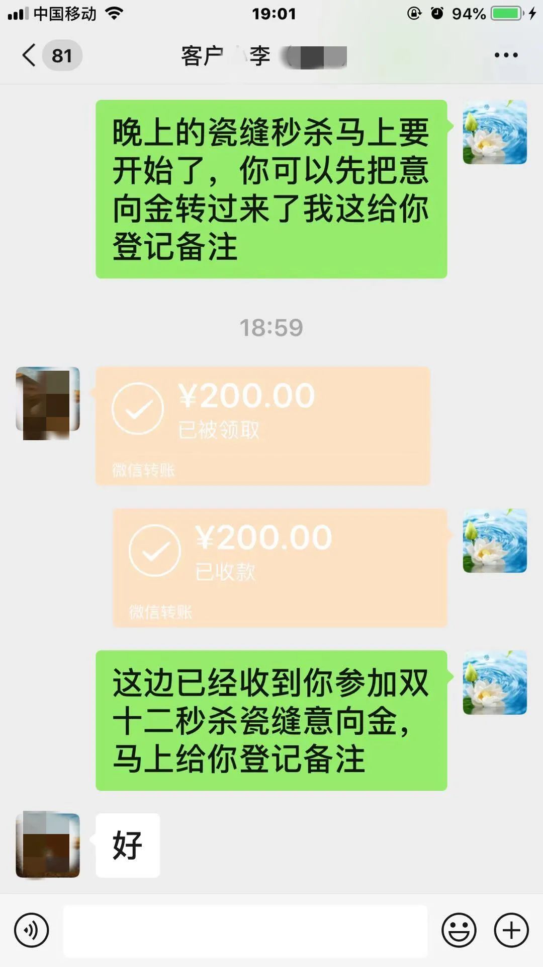 眾多早已蹲守在微信群的“定金人”