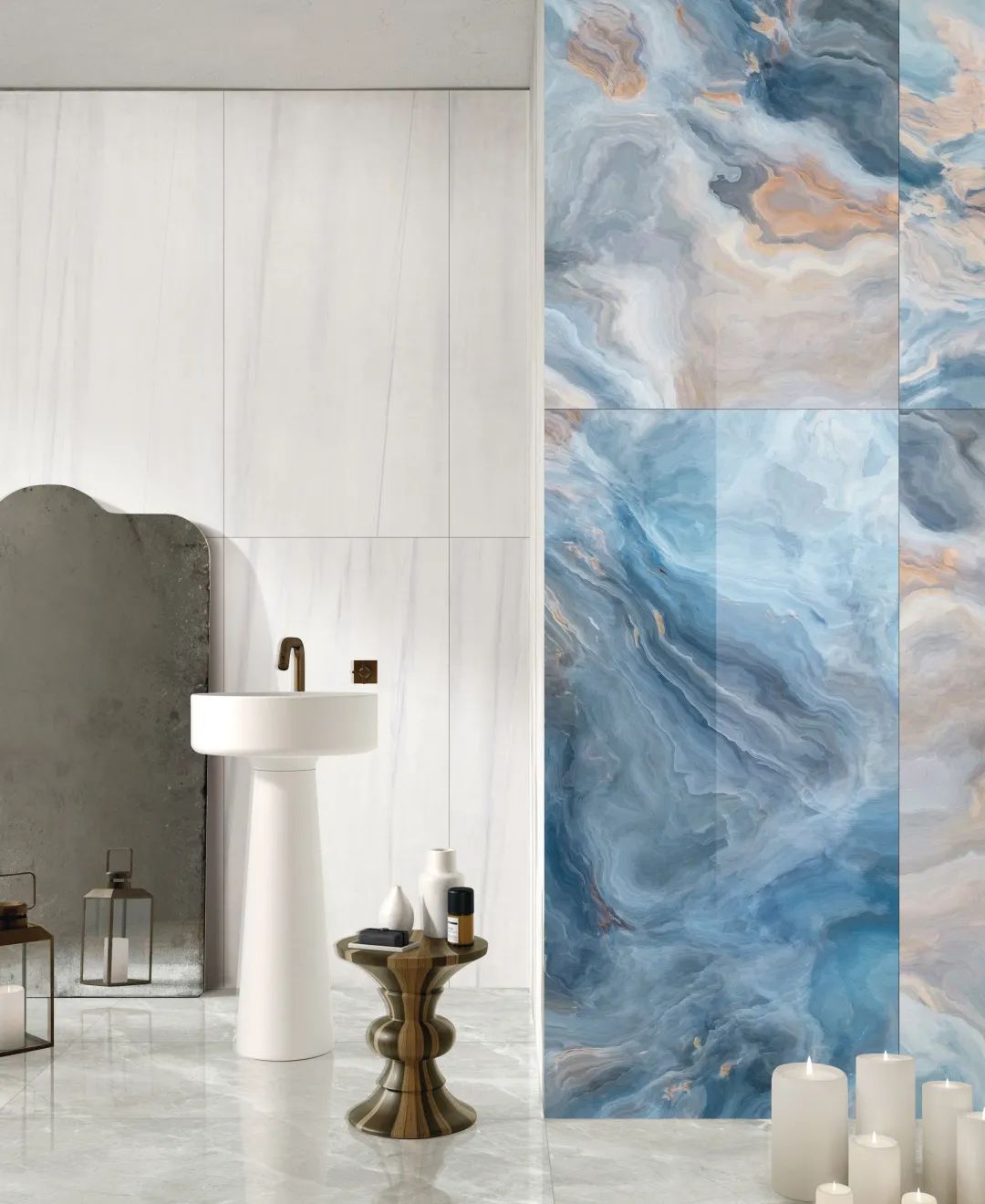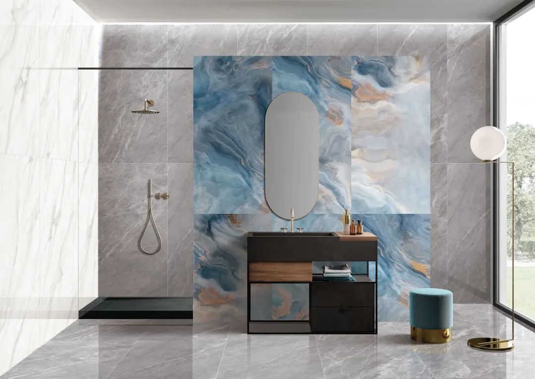 此外,對墻磚產(chǎn)品也進(jìn)行了調(diào)整完善,補(bǔ)充了多款300*800mm炫光釉產(chǎn)品,推出了600*1200mm輕薄款新品墻磚,增設(shè)了近20款300*600mm性價比極高的瓷片,實現(xiàn)墻地全空間瓷磚應(yīng)用搭配。