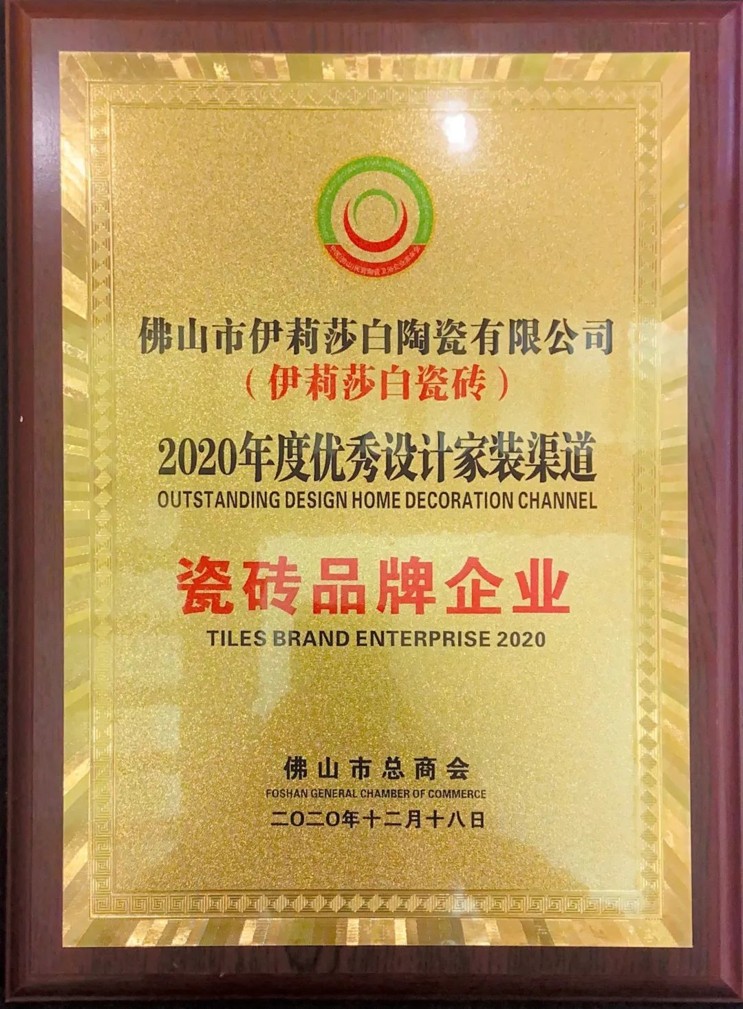 On December 18, the 19th China (Foshan) private ceramic sanitary ware entrepreneur Annual Conference award ceremony hosted by Foshan General Chamber of Commerce was held grandly in Crowne Plaza Foshan, and nearly 400 representatives of industry leaders, senior experts and well-known ceramic enterprises and other related industries gathered together for a grand event. At the annual meeting award ceremony, Elizabeth ceramic tile was awarded "2020 Excellent Design Home decoration Channel Ceramic tile Brand Enterprise" by virtue of its good terminal reputation.