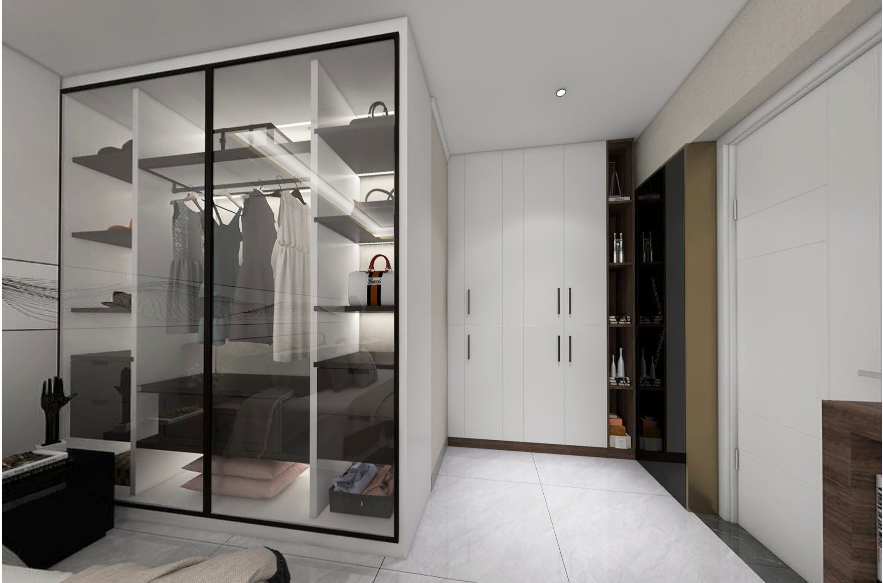 Transparent glass almirah delicate atmosphere, all clothes are presented clearly at present, reduce the inconvenience of blind rummaging; The chest of another half open mode can place the article such as the quilt that is not commonly used, two kinds of design take advantage of each, come so that the bedroom appears very neat and able.
