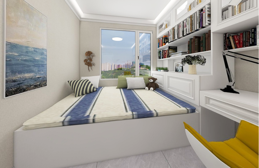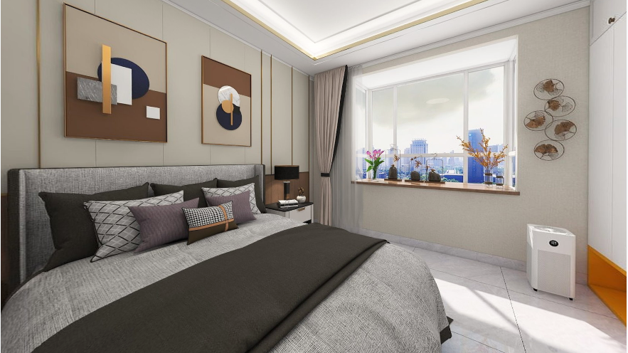 陽光透過窗戶入室,讓臥室變得格外溫暖舒適。