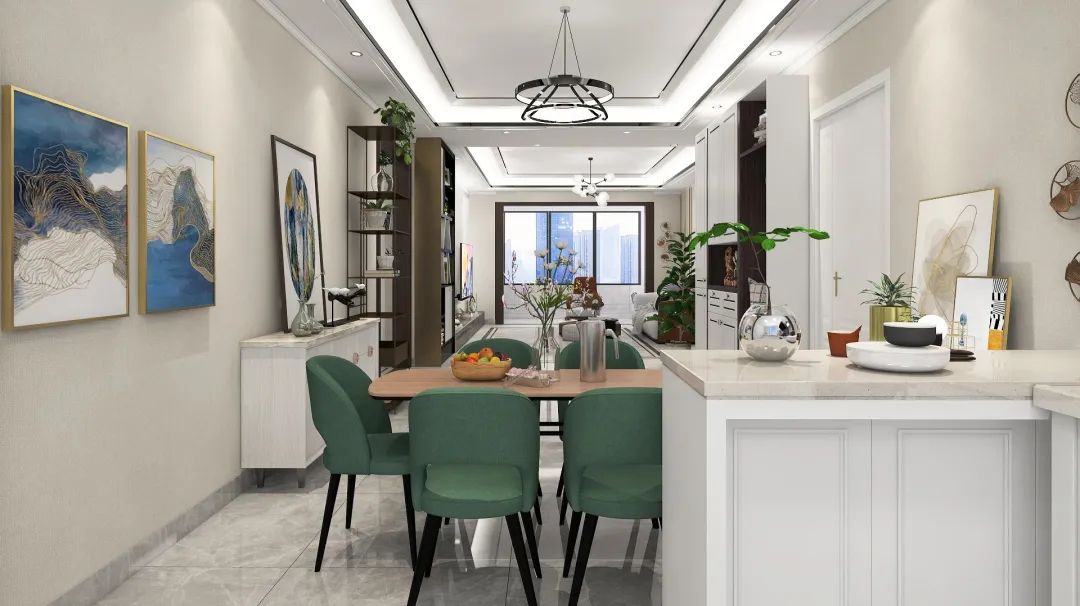綠色餐椅時尚醒目,打破灰色空間的沉寂,與家里綠植相映襯,帶來自然清新的生活氣息。