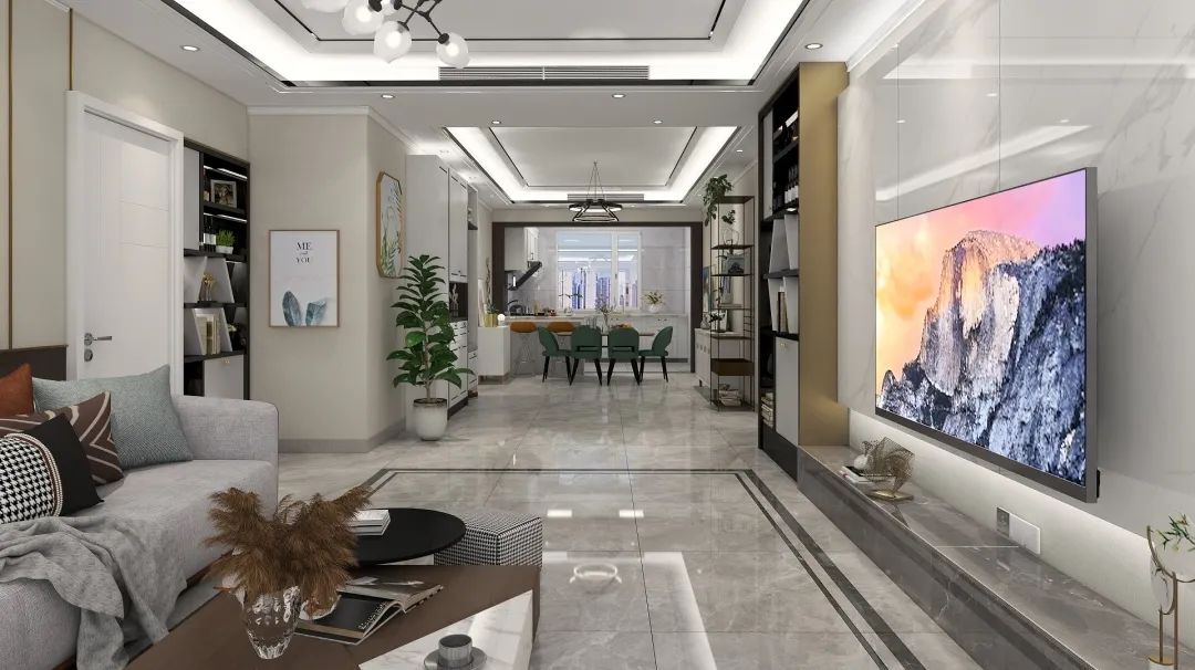 Full-body marble ceramic tile "Custer ash" one-key shop stick guest dining room floor, light brick surface in the light to make the whole household space appear more transparent and bright; The choice of advanced gray tone revealed host mature and sedate temperament.
