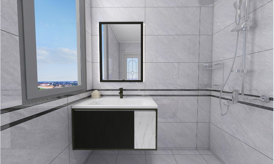 黑色雙層波打線讓原本單調(diào)的衛(wèi)生間變得更有層次感。