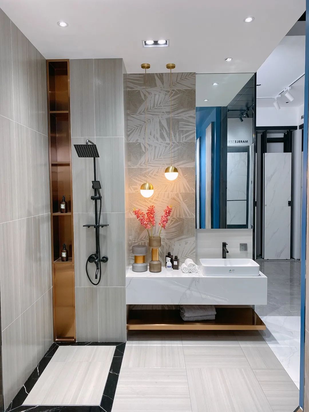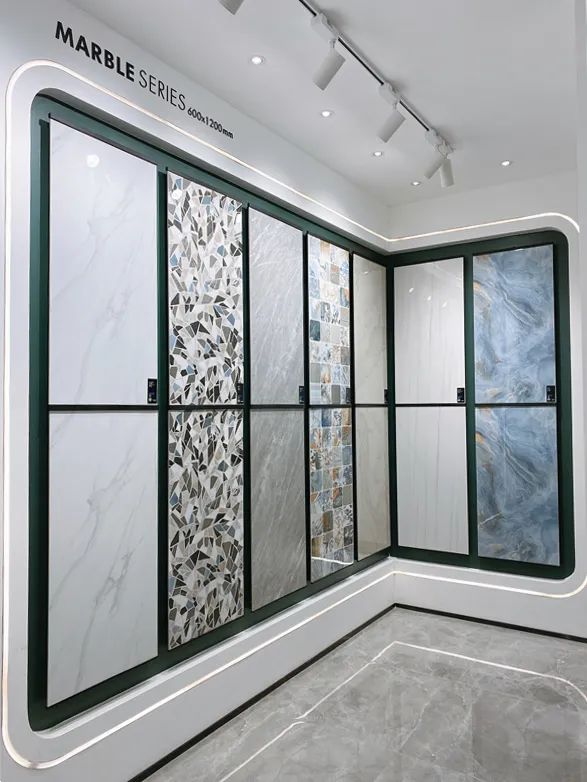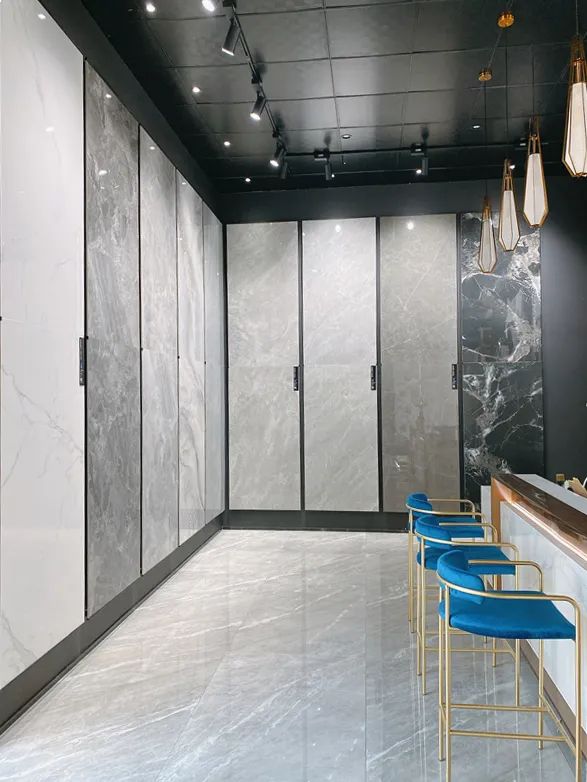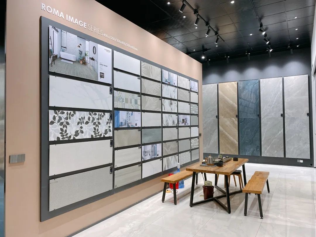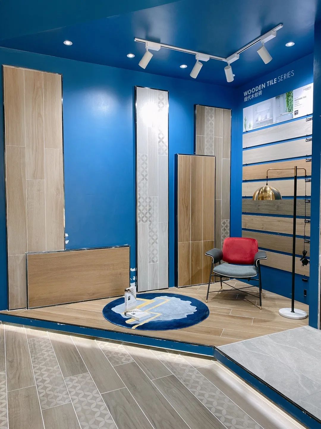 The material selection area displays a variety of products, including grand large board tiles, high-grade and fashionable marble tiles, porcelain wall tiles with diverse personalities, natural and comfortable modern porcelain wood and modern antique tiles with simple and elegant texture, which satisfy the one-stop application of the whole space of the wall and ground. If the dazzling array of ceramic tile products let you pick the eye, might as well put you want to decorate the effect to tell our shop assistant, let our little sister in the store for you to recommend.