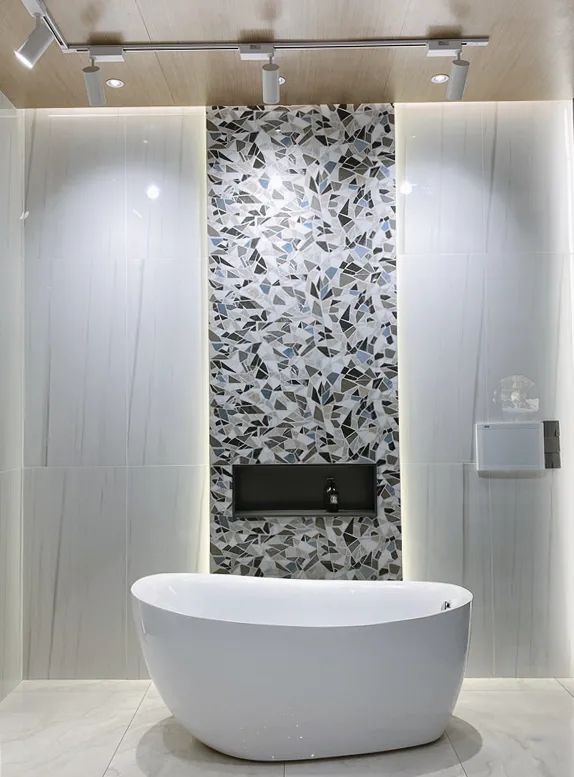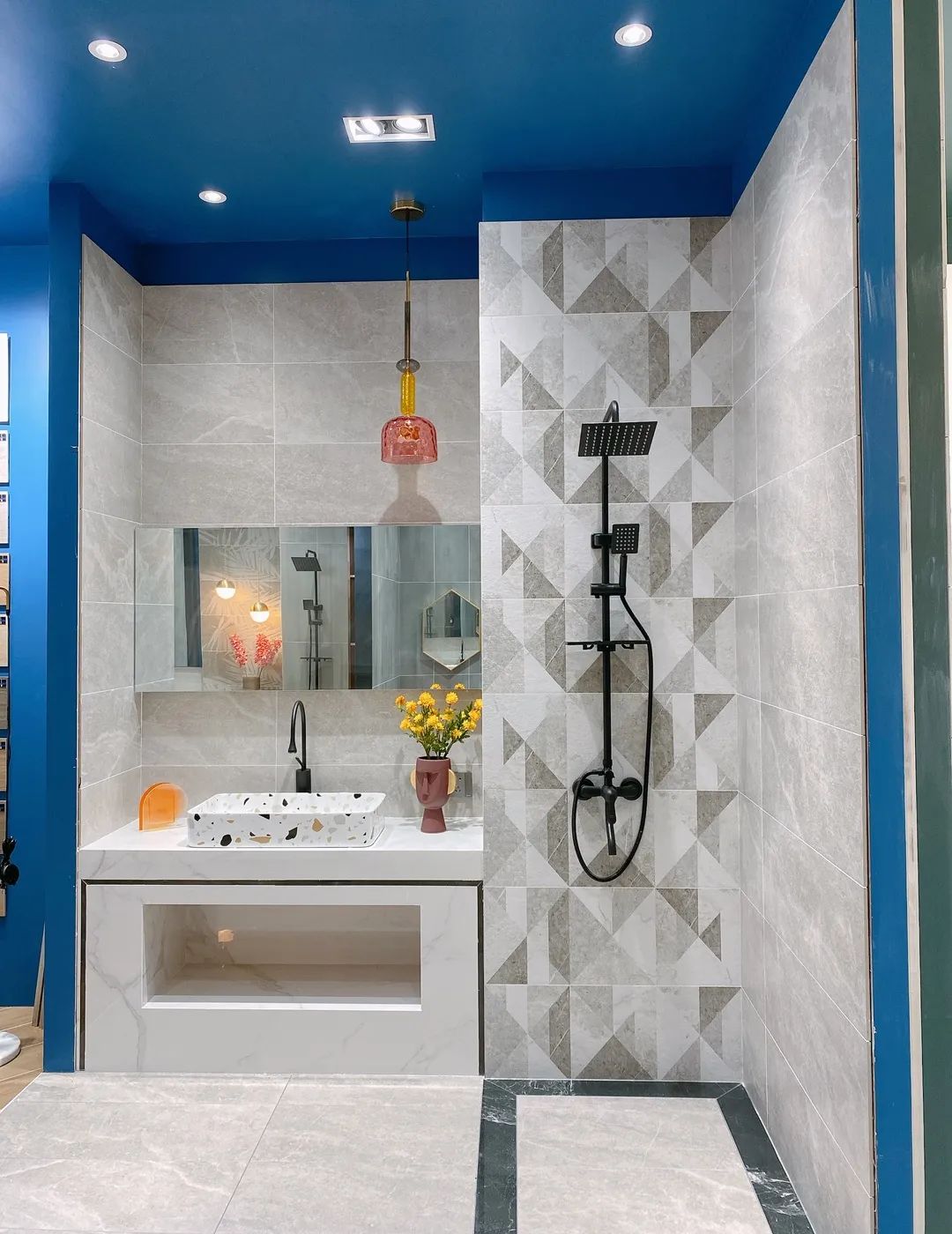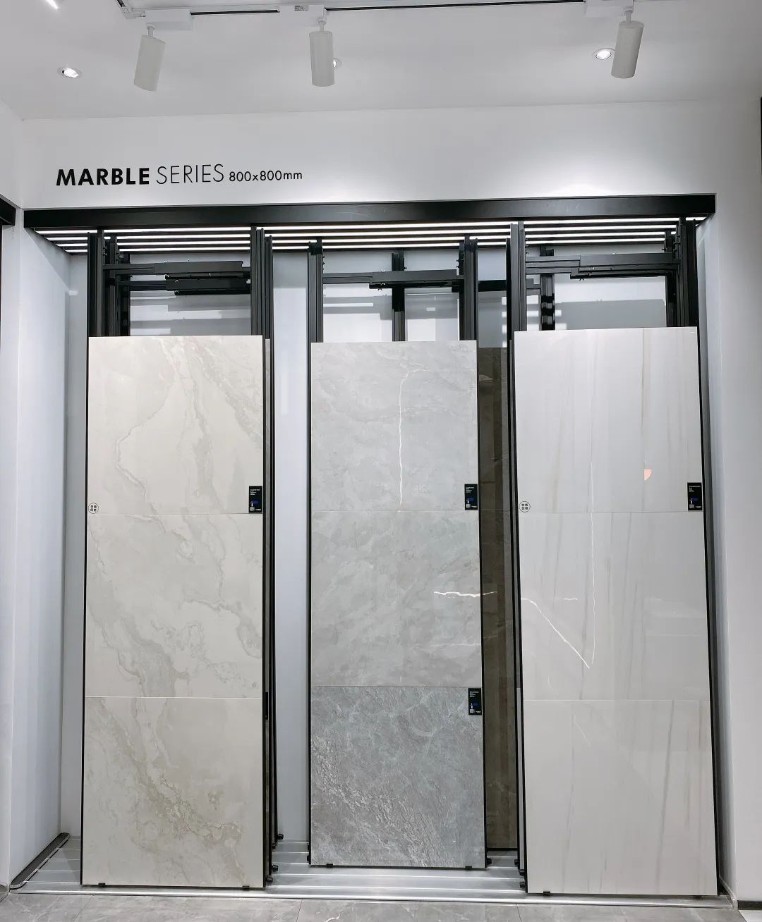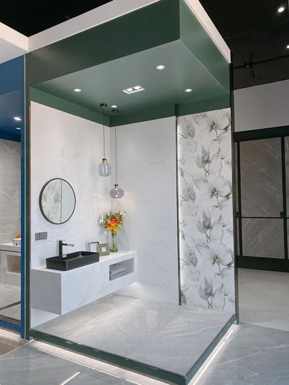 The material selection area displays a variety of products, including grand large board tiles, high-grade and fashionable marble tiles, porcelain wall tiles with diverse personalities, natural and comfortable modern porcelain wood and modern antique tiles with simple and elegant texture, which satisfy the one-stop application of the whole space of the wall and ground. If the dazzling array of ceramic tile products let you pick the eye, might as well put you want to decorate the effect to tell our shop assistant, let our little sister in the store for you to recommend.