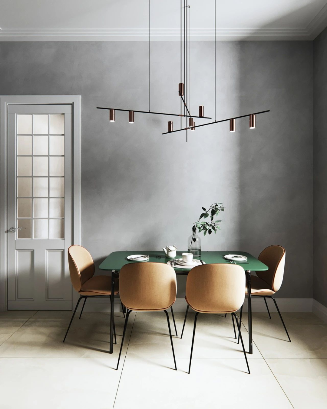In order to keep the whole grey space from being too monotonous, we use bright yellow and similar soft outfit to neutralize the cold grey and add a warm atmosphere.