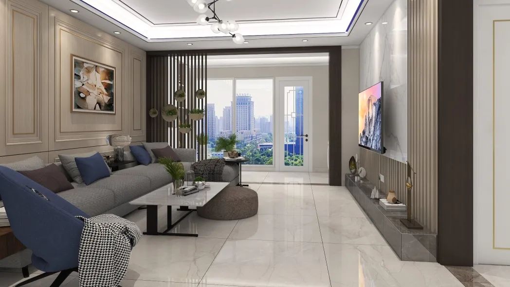 “維納斯”大理石瓷磚一鍵通鋪全空間,“維納斯”的暖灰色調(diào)讓空間看起來(lái)明亮溫暖,木質(zhì)定制墻柜飾面與地磚色調(diào)相近,保證了整體色彩的一致性;為了讓整個(gè)空間看起來(lái)更加寬敞大氣實(shí)用,設(shè)計(jì)師把觀光陽(yáng)臺(tái)推拉門去掉,大落地窗保證了充足的光線,有著很棒的采光和自然風(fēng)景。