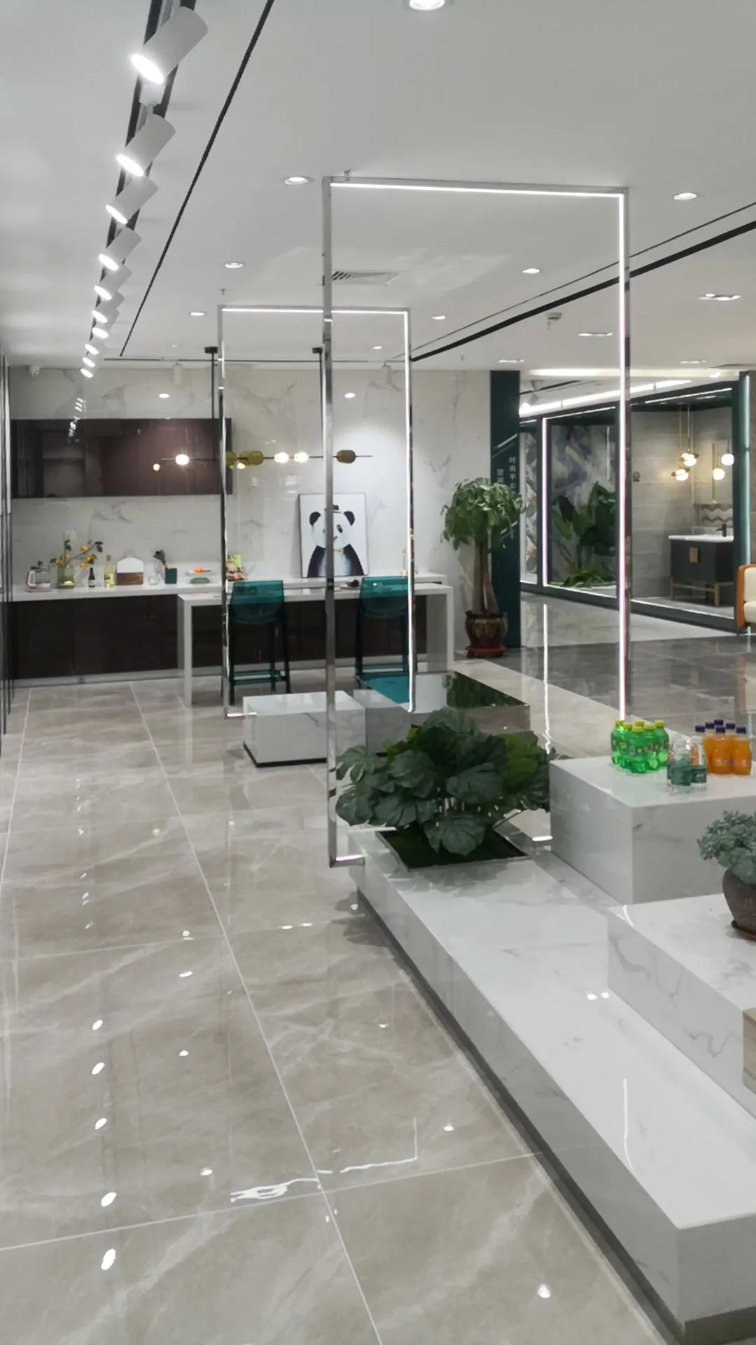 大量的燈帶設(shè)計(jì)不僅照亮空間烘托空間氛圍