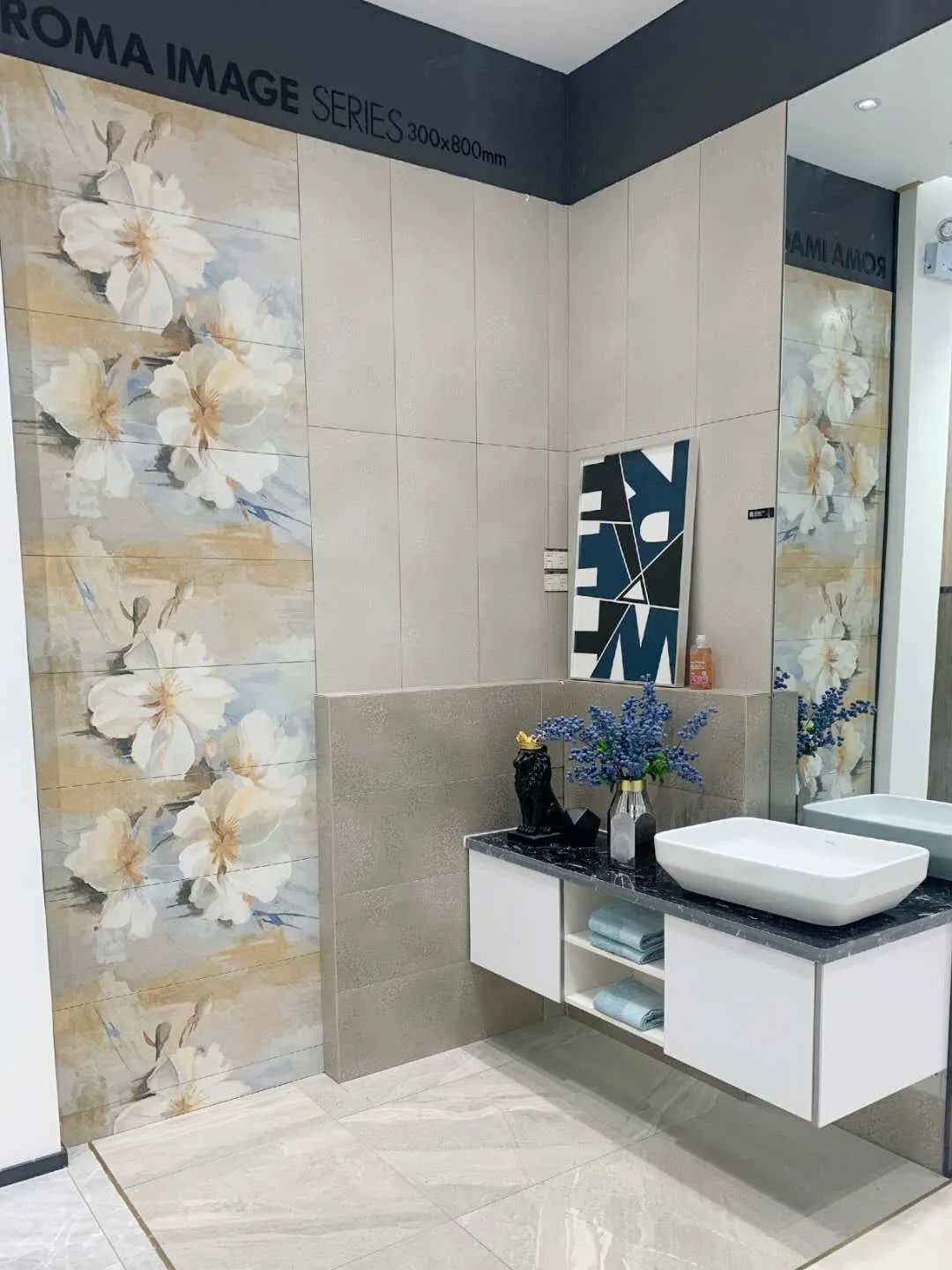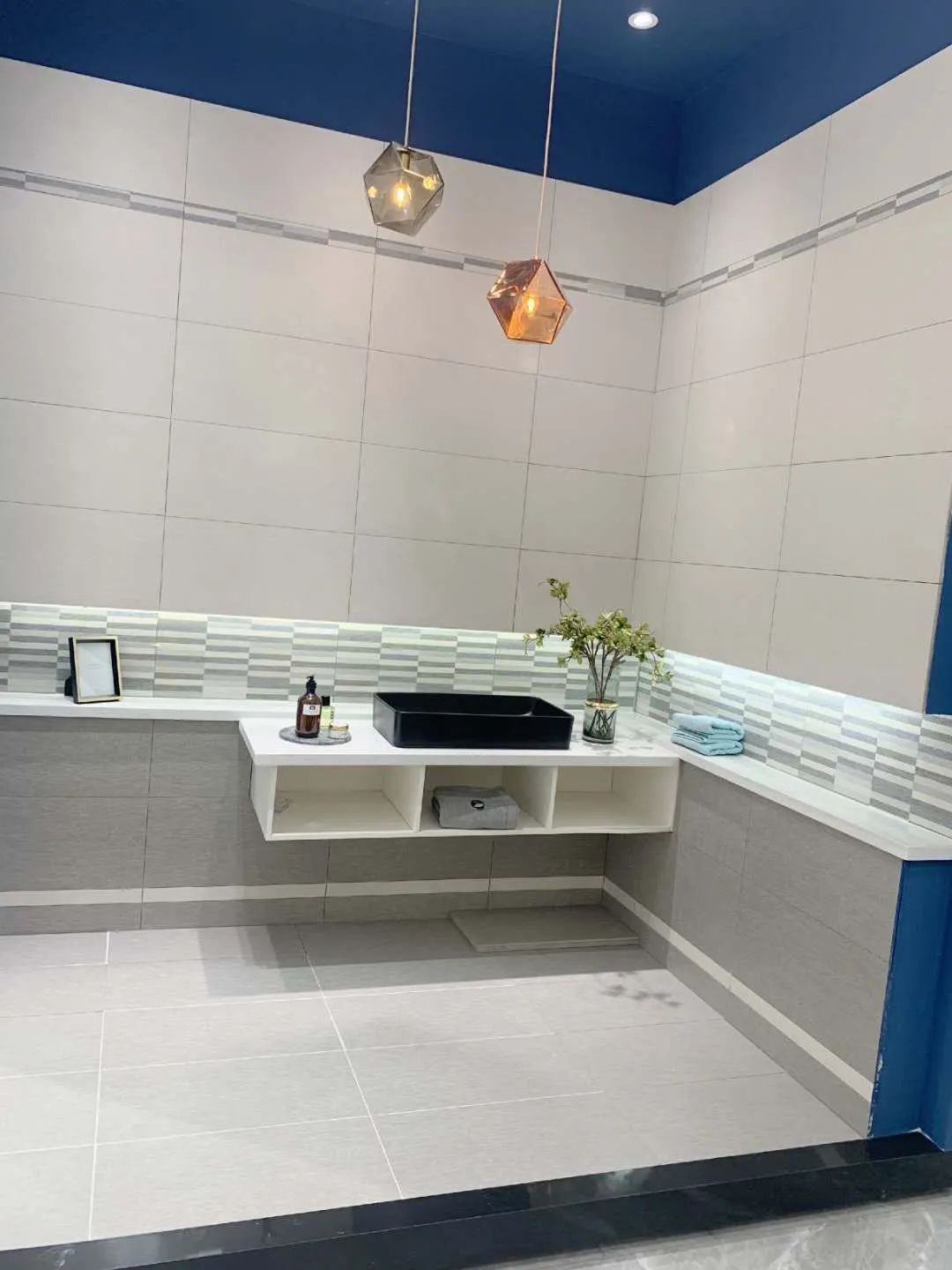 "Grey forest" series, the main brick and tile, wall tile and floor tile matching application, the overall effect is better, plant pattern tile, create a forest space atmosphere, very quiet and relaxed.