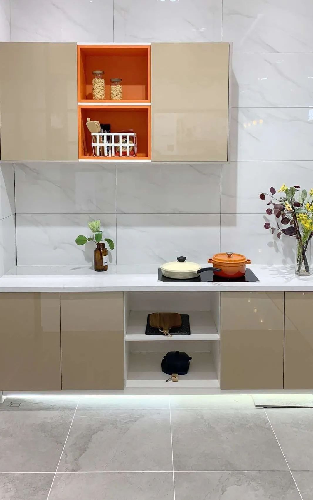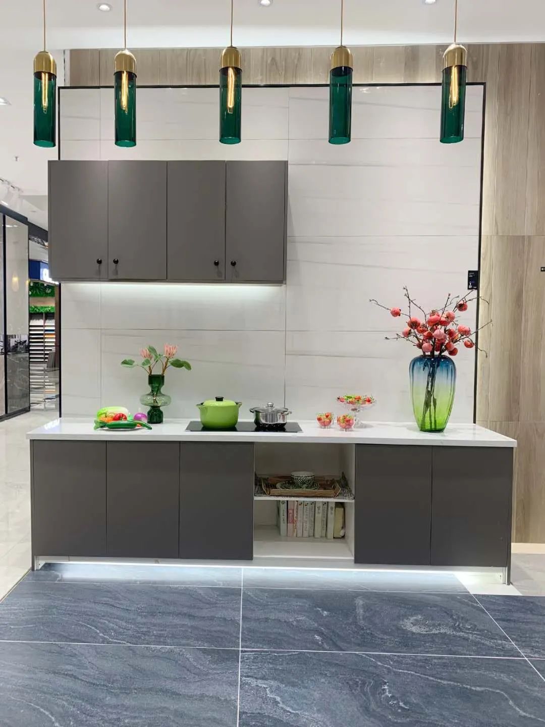 400*800mm亮光墻磚“星白”裝飾廚房墻面,搭配啞光“北極藍(lán)”大理石地磚,干凈清新,擺上幾束花藝,讓生活越發(fā)精致。