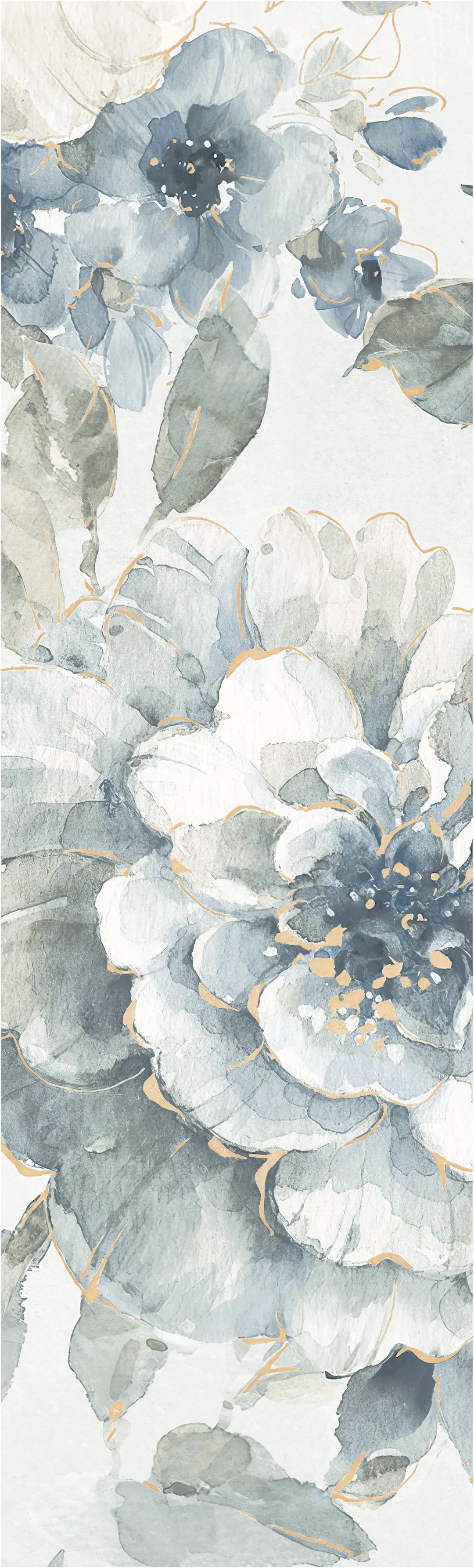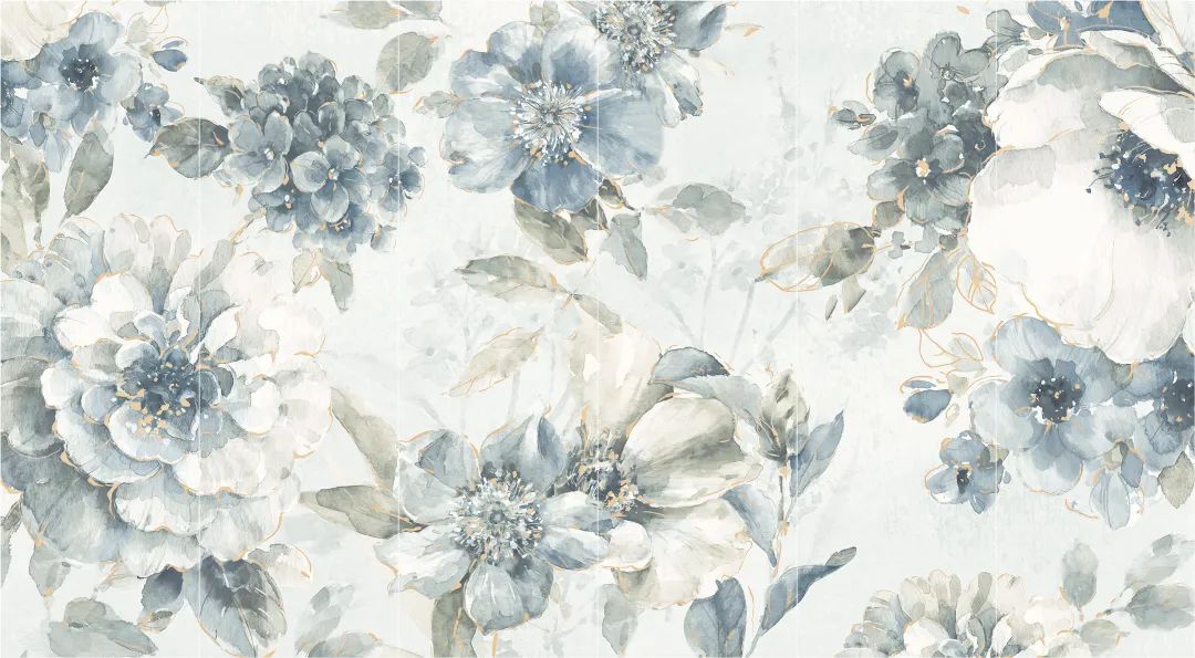 【設計來源】:摒棄大紅大紫的濃墨重彩,特意選取色澤素雅、高貴的丹青藍作為整副背景圖主色調(diào),配以淡橘色線條勾勒、米白色點綴,將天青煙雨朦朧中的沁園牡丹表現(xiàn)得淋漓盡致。