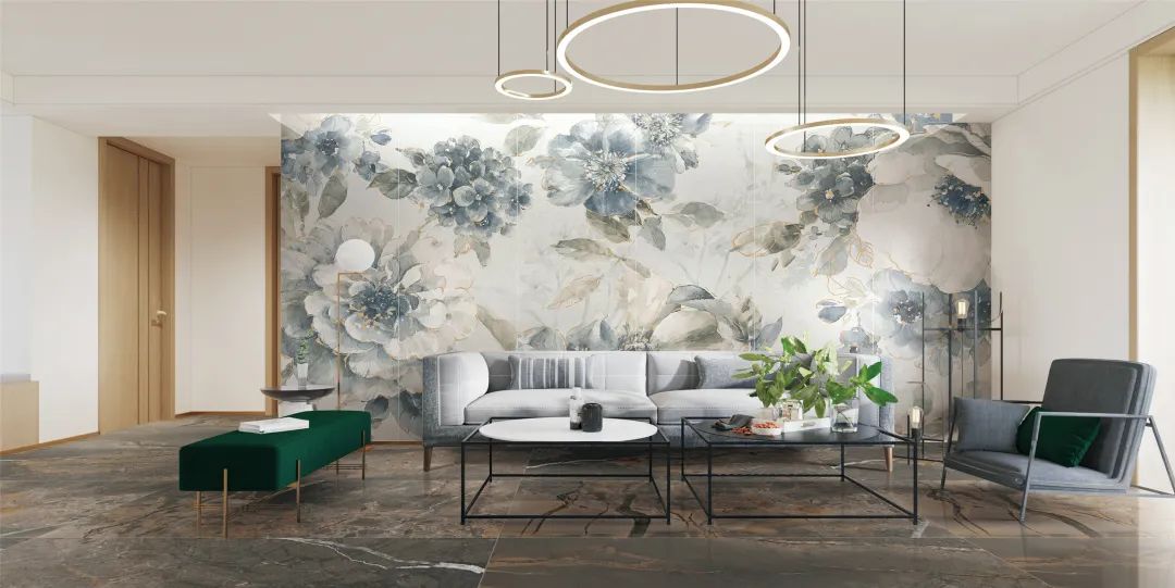 從地面、墻面、櫥柜板、洗手盆、桌面、料理臺等各個區(qū)域的靈活運用