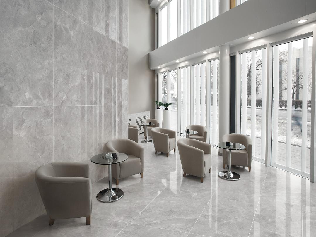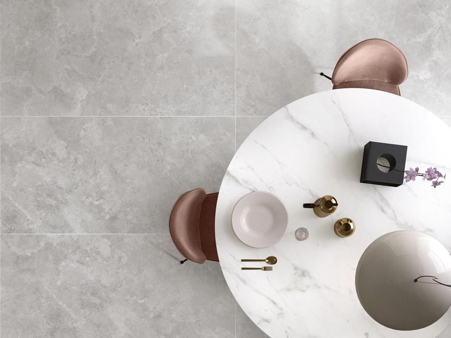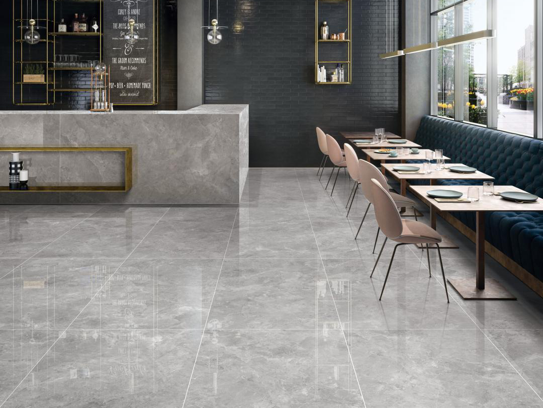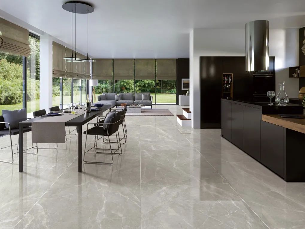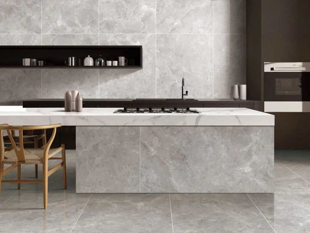 Using the advantages of "Lucratia" one stone and two sides (bright surface + matte surface), the bright wall and matte floor can meet the physical requirements of anti-skid and easy cleaning of the kitchen space.