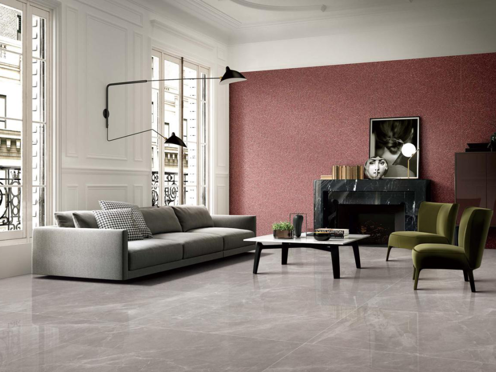 750*1500大面積鋪貼,酒紅色墻紙?jiān)诟呒?jí)灰空間中具有強(qiáng)烈的穿透力,冷暖色彩的強(qiáng)烈對(duì)比下,令人眼前一亮。