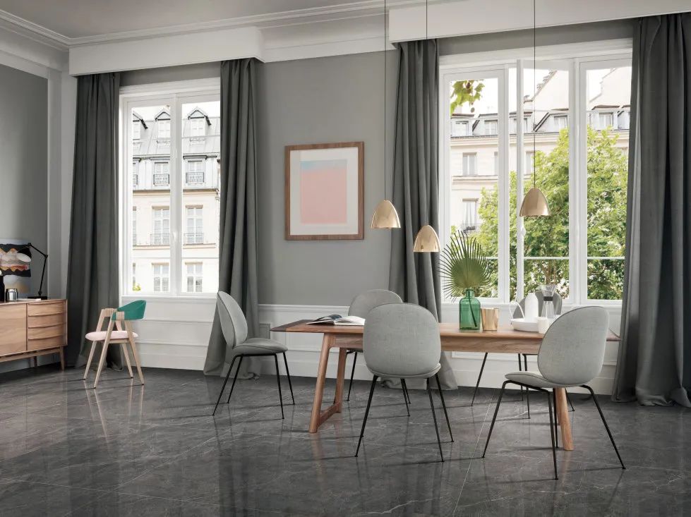 閃電灰”墻地?zé)o限延伸,憑一己之力便能打造出一個(gè)高質(zhì)感的現(xiàn)代簡約居室。