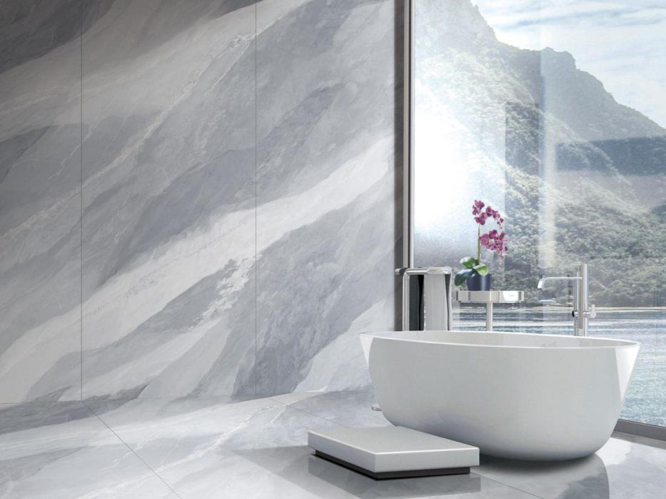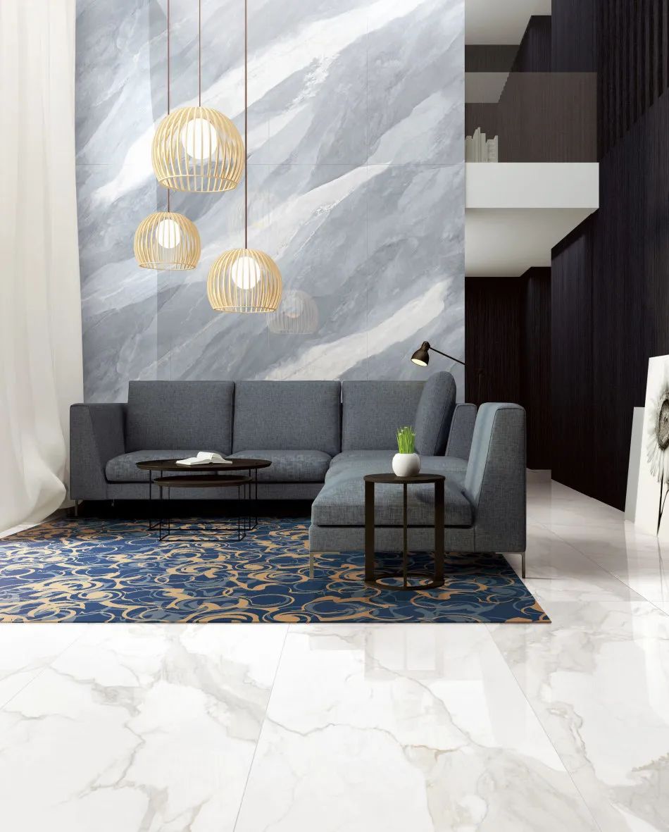 來自意大利珍貴的寶藏大理石藍(lán)金沙,有著浪漫唯美的淺藍(lán)色彩,流沙般的白色斜紋,留下了被歲月沖刷的痕跡,一磚多紋無限連,呈現(xiàn)出強(qiáng)烈的立體感與層次感。