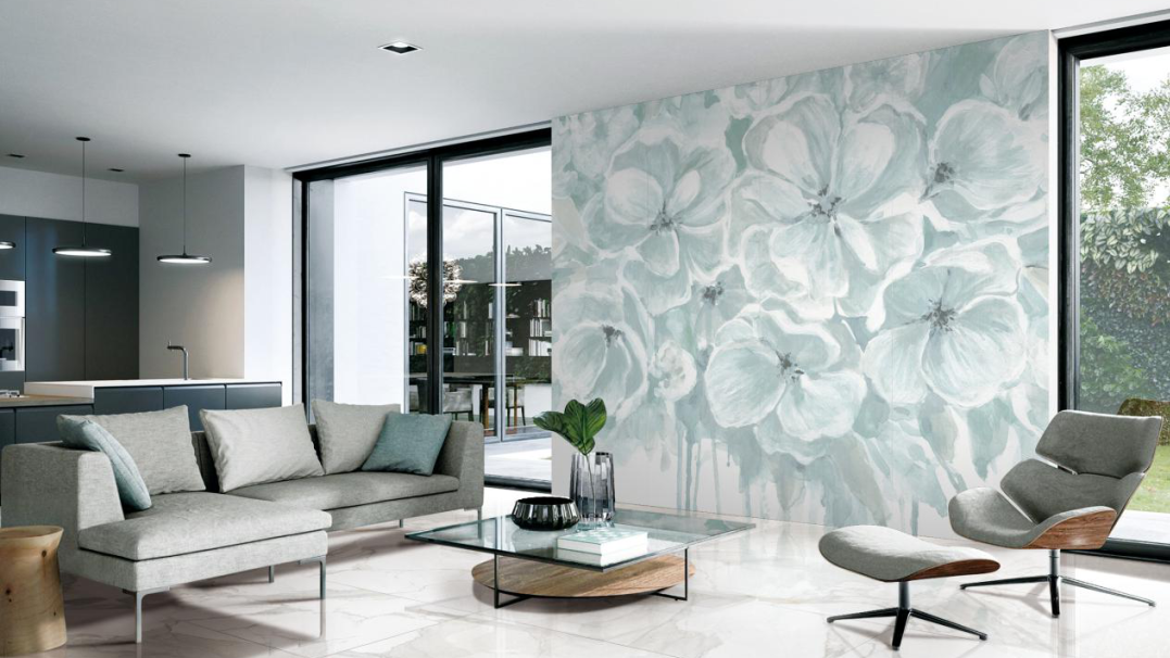 The wall and ground extend infinitely, presenting a dynamic beauty of high mountains and running water, and the high-grade atmosphere.