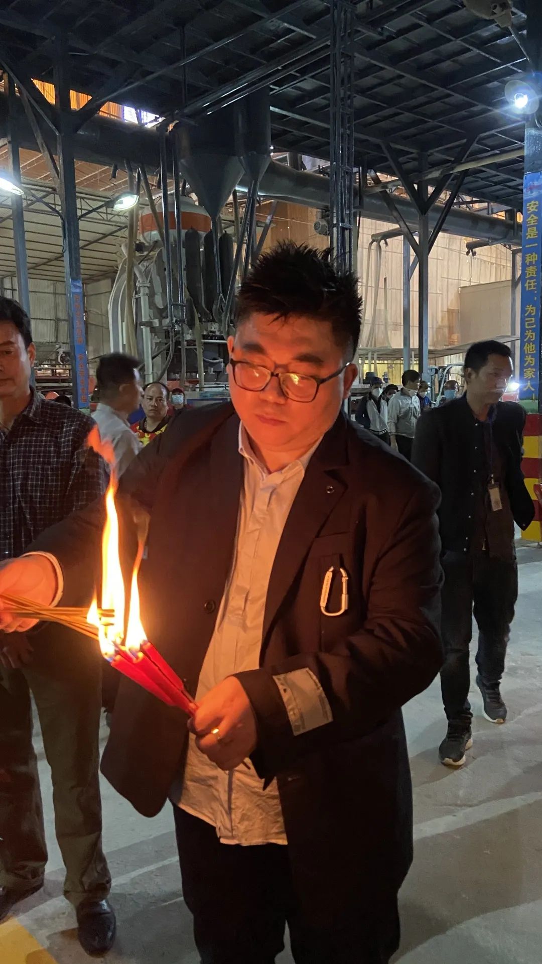 In the morning, the general manager of the enterprise Chen Huanding (Chen) led the department leaders to Heyuan production base, and director Feng and workshop team members together held the opening kiln ignition ceremony.