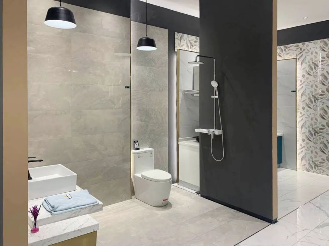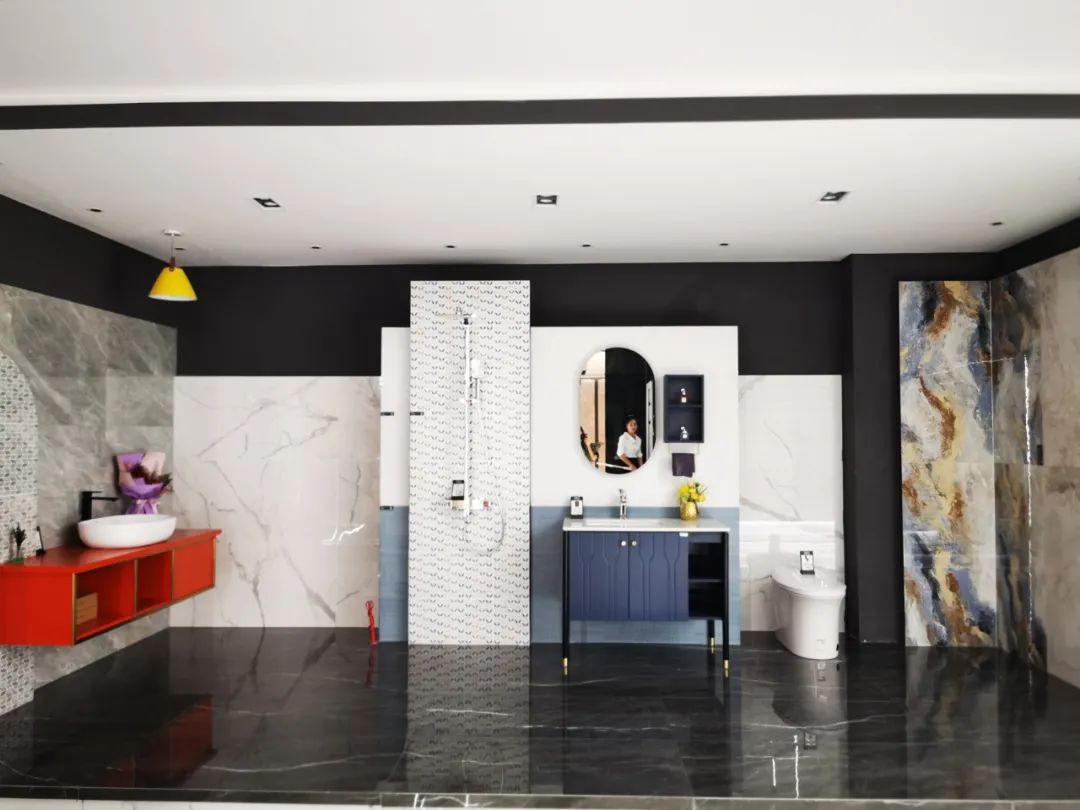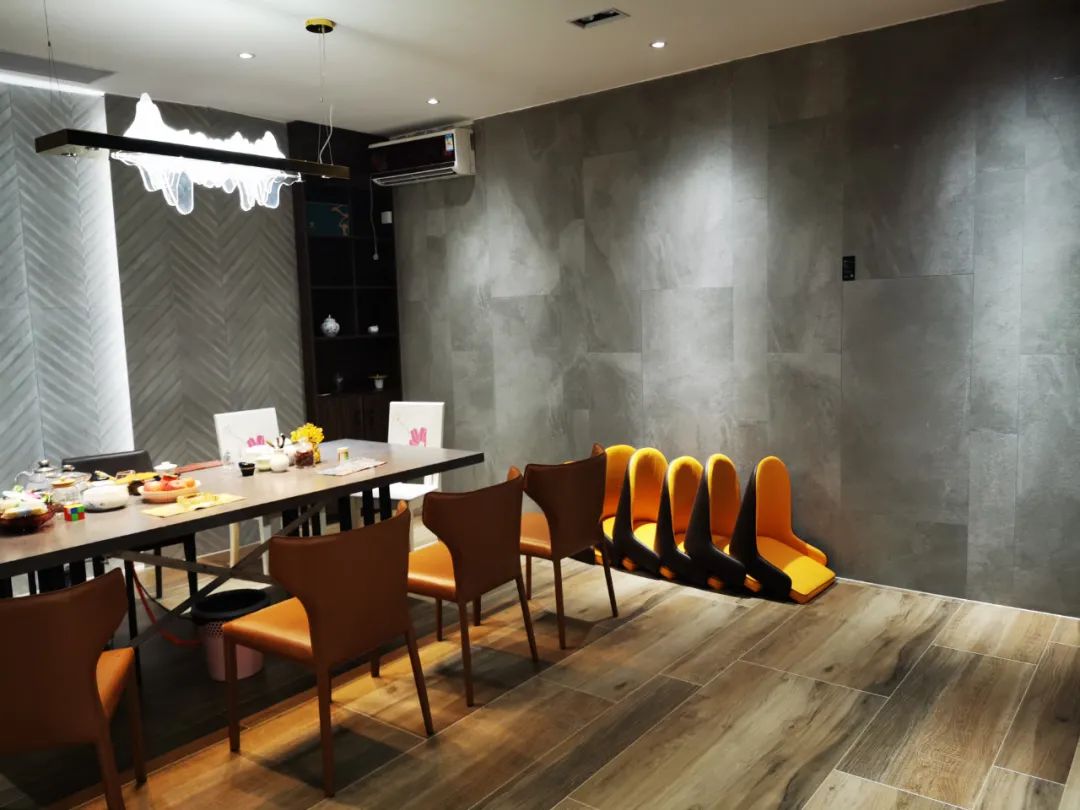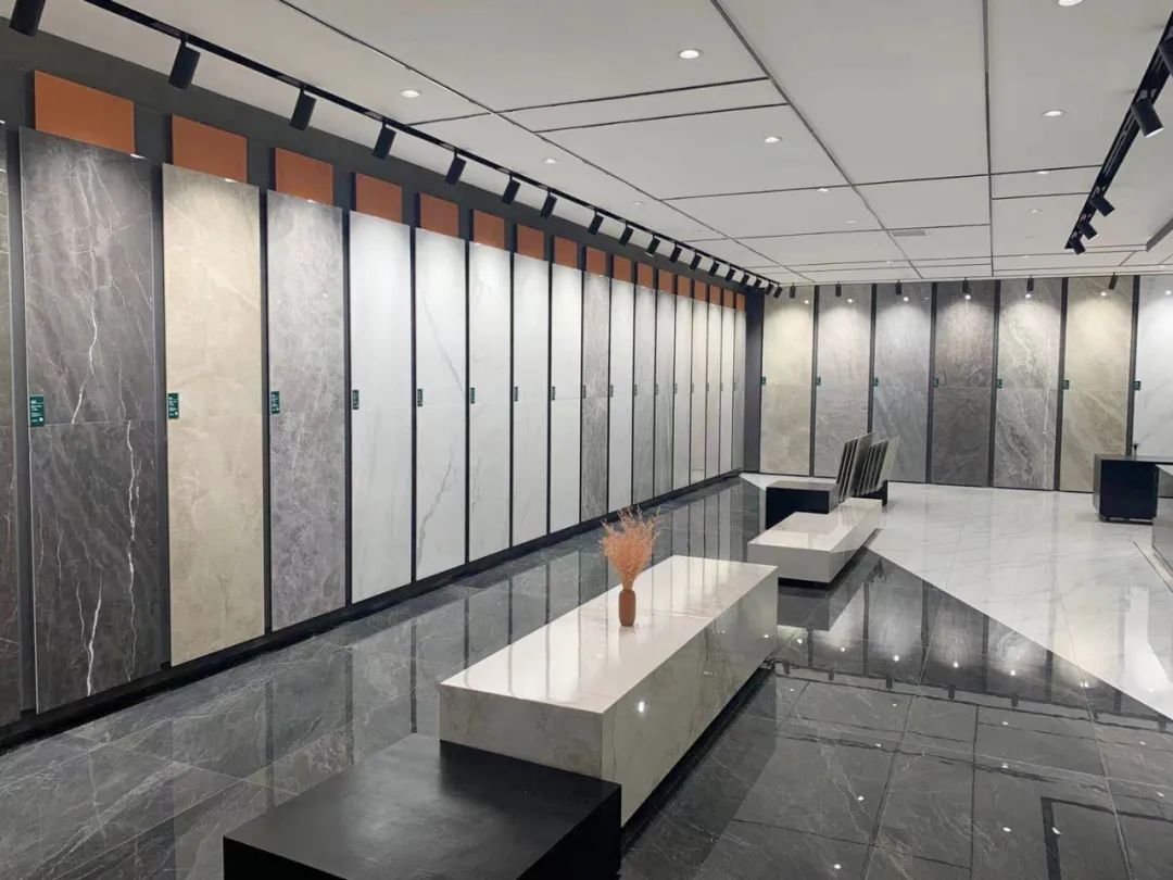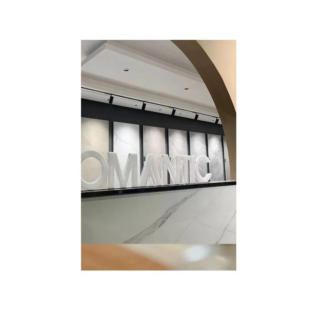 井然有序的大理石瓷磚選材區(qū),勾畫出一道石材風(fēng)景。The marble tile selection area delineates a stone landscape.羅曼締克大理石瓷磚系列注重紋理觸感、視覺效果到空間應(yīng)用的體驗(yàn)美感。來到樓梯中庭處,曲線優(yōu)雅的吊燈為店內(nèi)空間帶來了流動(dòng)感和藝術(shù)感,同時(shí)指引著賓客拾階而上,在樓梯轉(zhuǎn)彎處給你一份驚喜。如果你想給廚房、浴室、陽臺(tái)或玄關(guān)處,尋覓獨(dú)特的設(shè)計(jì)靈感,那么二樓是你的最佳選擇。二樓展示著300x600mm、300x800mm、360x900mm瓷質(zhì)模具磚,豐富的花色與質(zhì)感,靜待著你的欣賞。ROMANTIC西雙版納店面設(shè)計(jì)已經(jīng)進(jìn)入最后的優(yōu)化期間,靜待它的完美呈現(xiàn),到時(shí)小曼將用美好的店面照片解讀ROMANTIC西雙版納的故事。3月16-17日,陳總邀請(qǐng)了羅曼締克品牌總部市場部經(jīng)理郭彩宏到店為團(tuán)隊(duì)進(jìn)行一場技能提升。郭彩宏在產(chǎn)品賣點(diǎn)和品牌優(yōu)勢、文化上多維度講解,讓ROMANTIC西雙版納團(tuán)隊(duì)收獲滿滿干貨。
