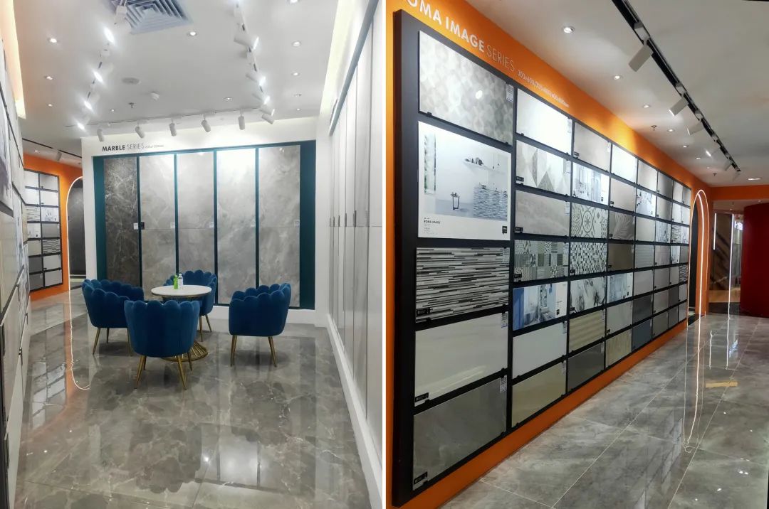 The Silver Elizabeth Tile Modern Pavilion is located on the first floor of the local red star Macalline. The magnificent continuous pattern slabs, stylish and beautiful marble tiles, high-end porcelain wall tiles with unique characteristics, natural and comfortable modern porcelain wood, and elegant texture Modern antique...Hundreds of fine ceramic tiles come together to form an art corridor.