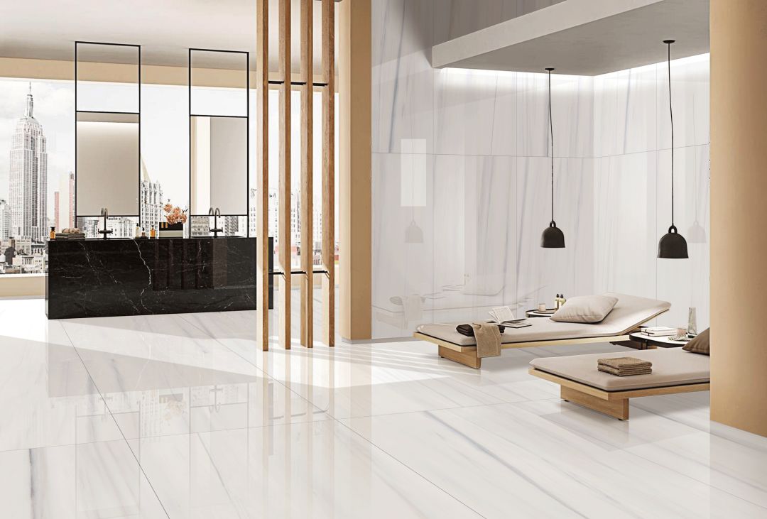 純潔干凈的白色調(diào),磚面光感溫潤,灰色紋理猶如流星劃過天際形成的炫麗線條,璀璨奪目。把流星一閃而逝的魅力瞬間刻畫在磚面,對(duì)美好生活充滿向往。