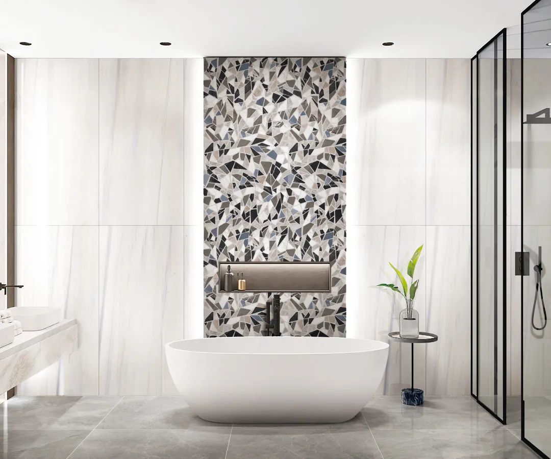 碎片花磚局部點(diǎn)綴墻面,這衛(wèi)生間,太個(gè)性,太有創(chuàng)意。