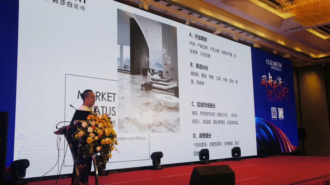 Liu Qingqing, general manager of brand marketing of ELZIABETH CERAMICS, with the theme of "Future, Has Come", deeply analyzed the current industry market status, and put forward how we should deal with the complex market competition; by fully cognizing the brand Positioning, advantages, planning brand development strategy; through effective product strategy, enhance brand competitiveness.