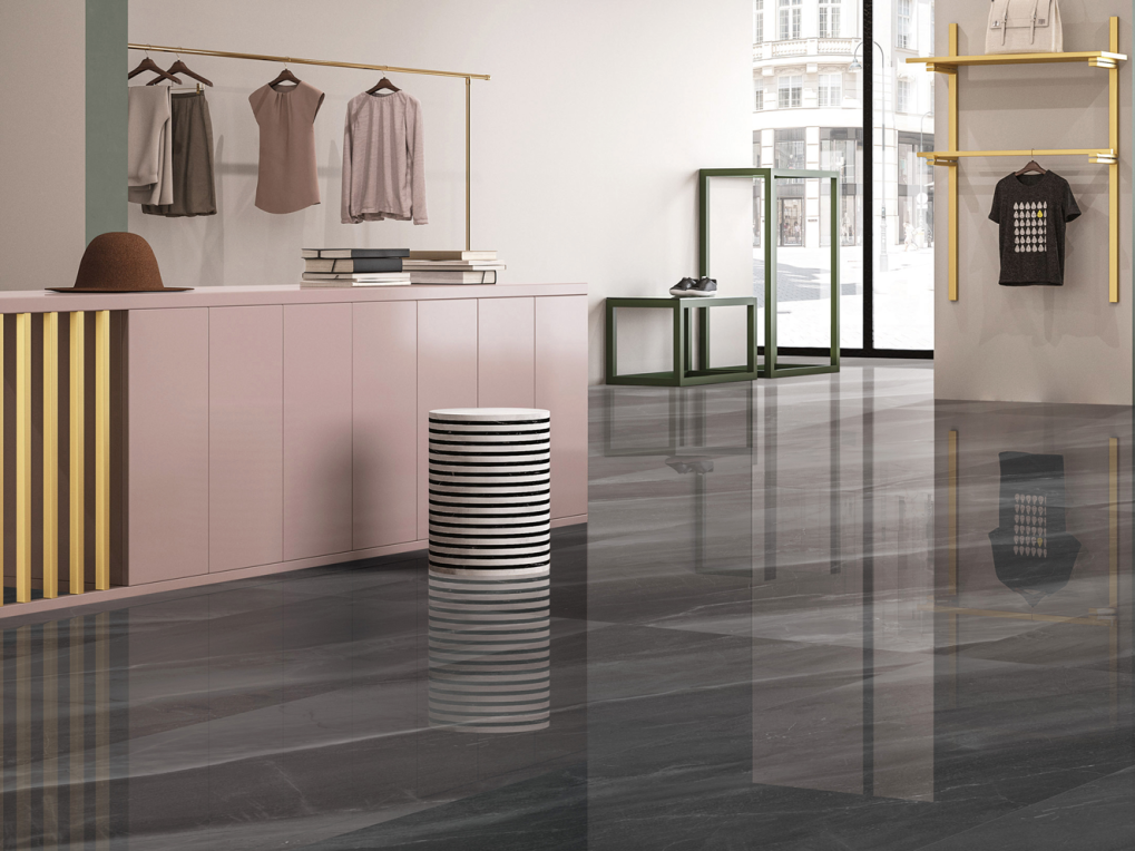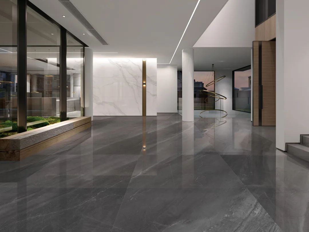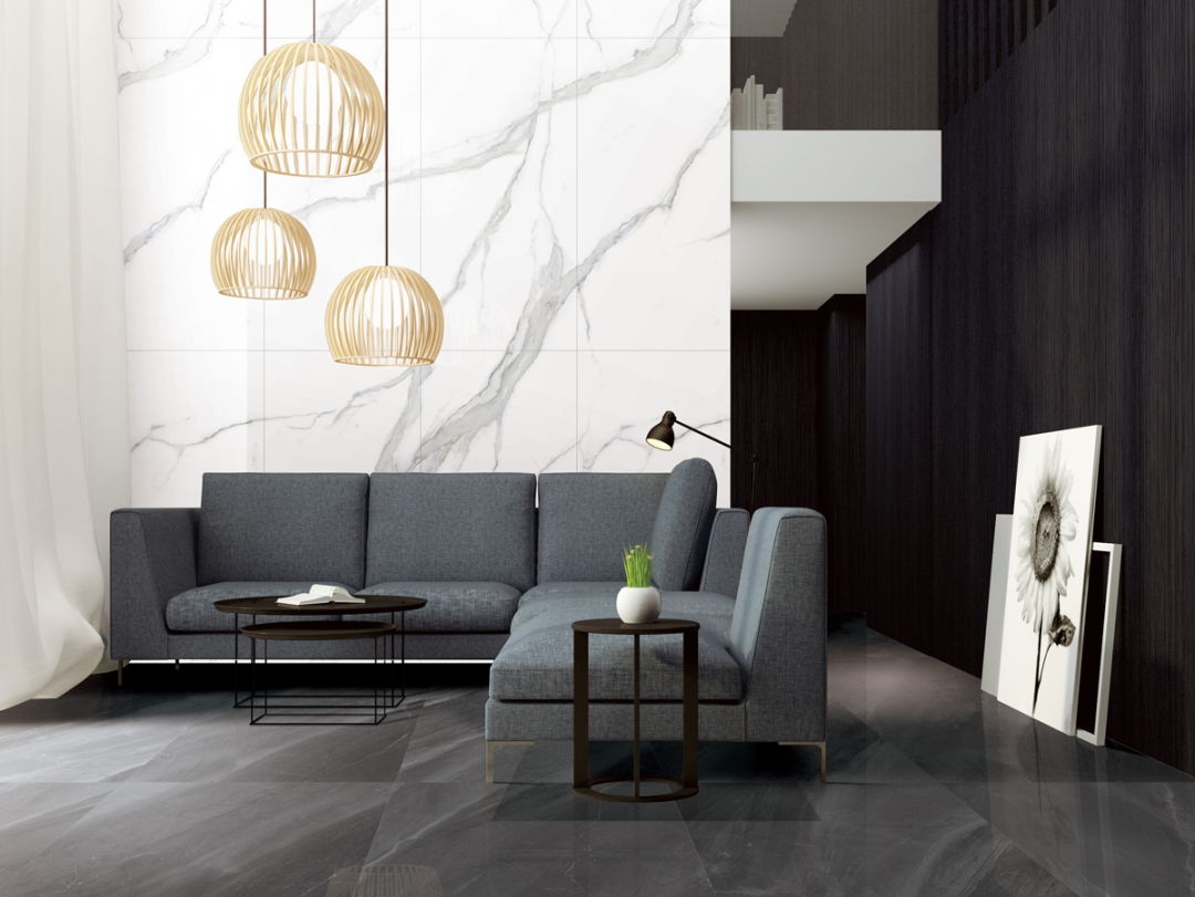 Derived from precious natural stone, the deep gray tone is the most advanced and elegant. The white texture is like turbulent water, which flows down with the trend. The gray and white lines are alternated and have a sense of hierarchy.