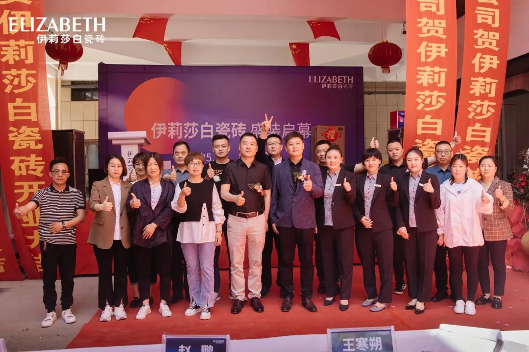 On May 10th, the 360㎡ Gaocheng ELZIABETH CERAMICS Modern Pavilion welcomed the opening ceremony, and a grand opening ceremony kicked off in the eyes of hundreds of people. The leaders of Gaocheng Wangyang Building Materials Plaza, the partners of Gaocheng ELZIABETH CERAMICS, and the regional distributors of Elizabeth Tiles in Shijiazhuang visited the site in person and sent blessings to the opening.