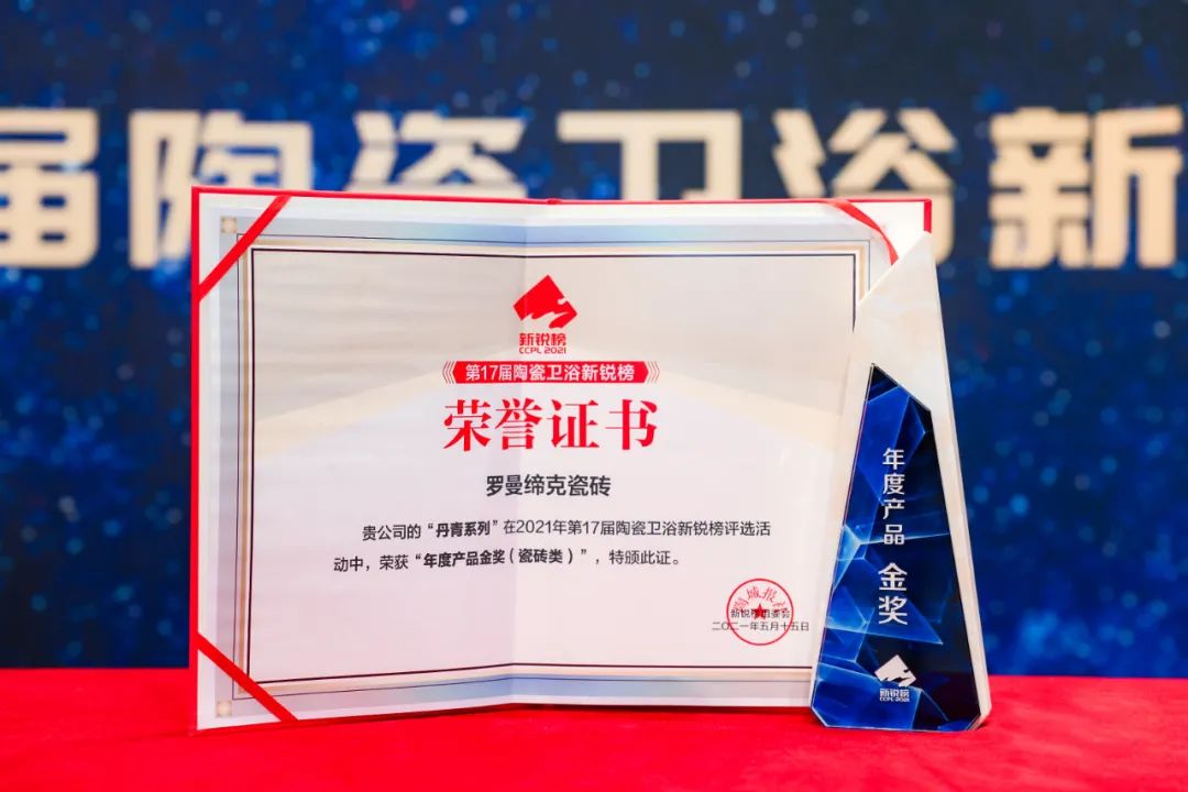 羅曼締克瓷磚丹青系列從眾多參評品牌中脫穎而出,榮獲“年度產(chǎn)品”金獎,是行業(yè)對ROMANTIC的又一肯定和認可。