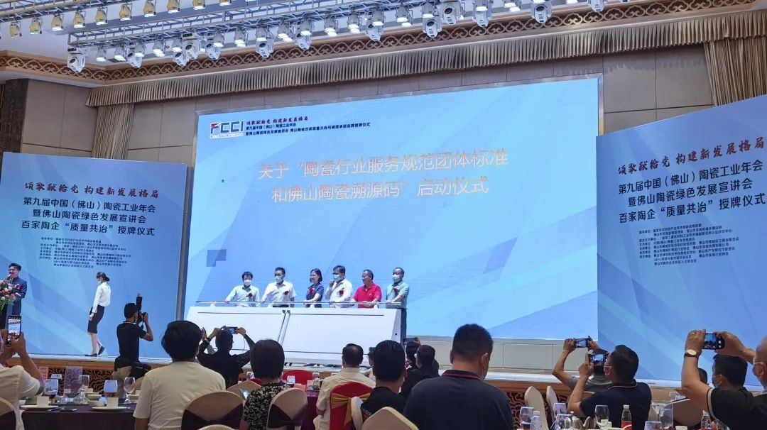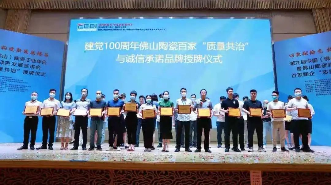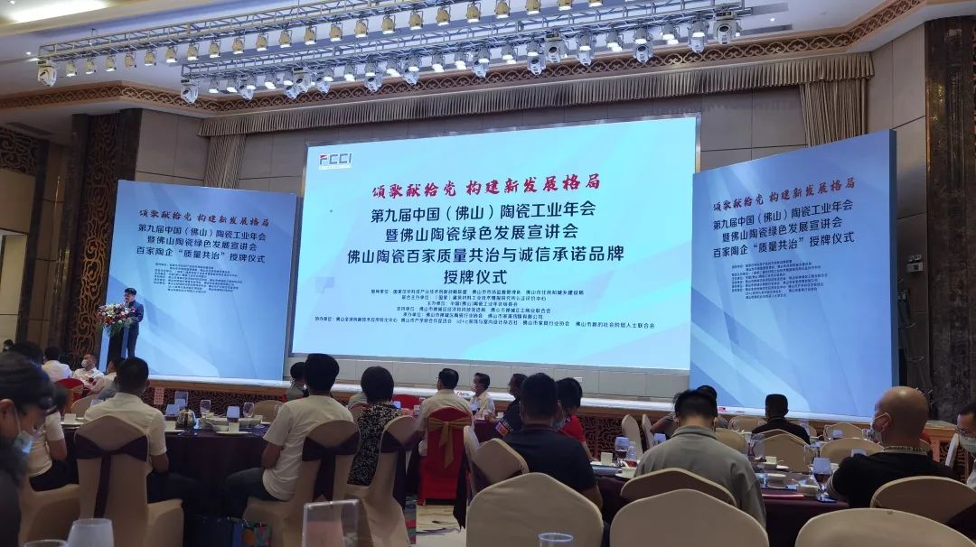On May 30, the 9th China (Foshan) Ceramics Industry Annual Conference and Foshan Ceramics Green Development Promotion Conference, the 100th anniversary of the founding of the Communist Party of Foshan ceramics "quality co-governance" award ceremony was held in the auditorium of the Foshan CPPCC compound. The conference mainly centered on the themes of "Foshan Standard", "Green Certification", "Quality Co-governance", etc., to encourage ceramic companies to take the first step in building a new development pattern, set a benchmark, show new achievements, and promote the continued health of Foshan's ceramic industry development of. On the same day, hundreds of ceramic entrepreneurs in the industry gathered together to participate in this meeting.