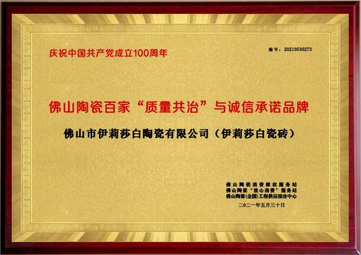 伊莉莎白瓷磚憑借過硬的產(chǎn)品品質(zhì)和良好的市場美譽度上榜佛山陶瓷百家“質(zhì)量共治與誠信承諾”品牌。